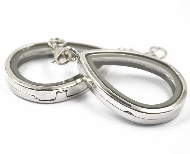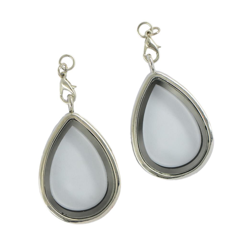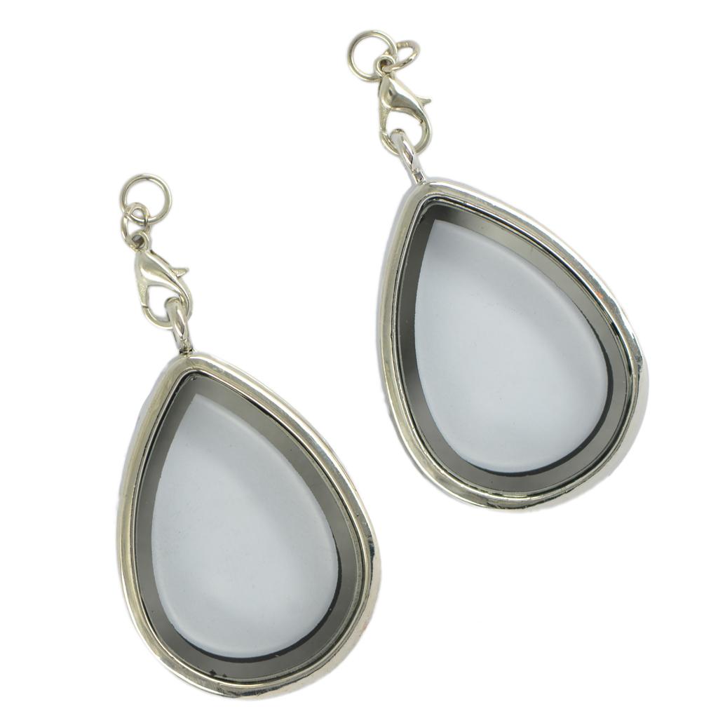 2PCS Silver water drop Magnetic Glass floating Alloy Locket Charms
