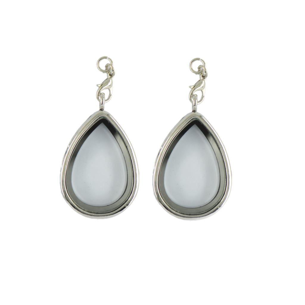 • Silver Water Drop Magnetic Glass floating Charm Locket with Lobster and Jump Rings