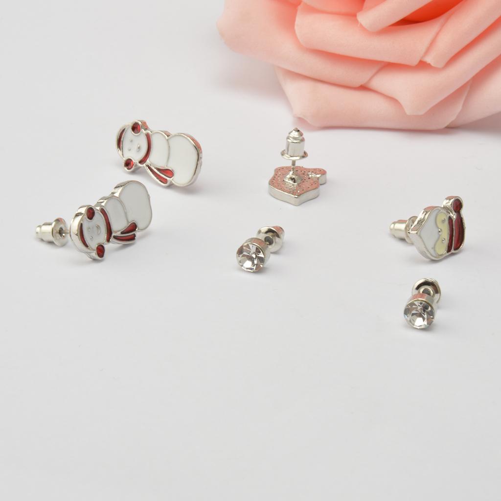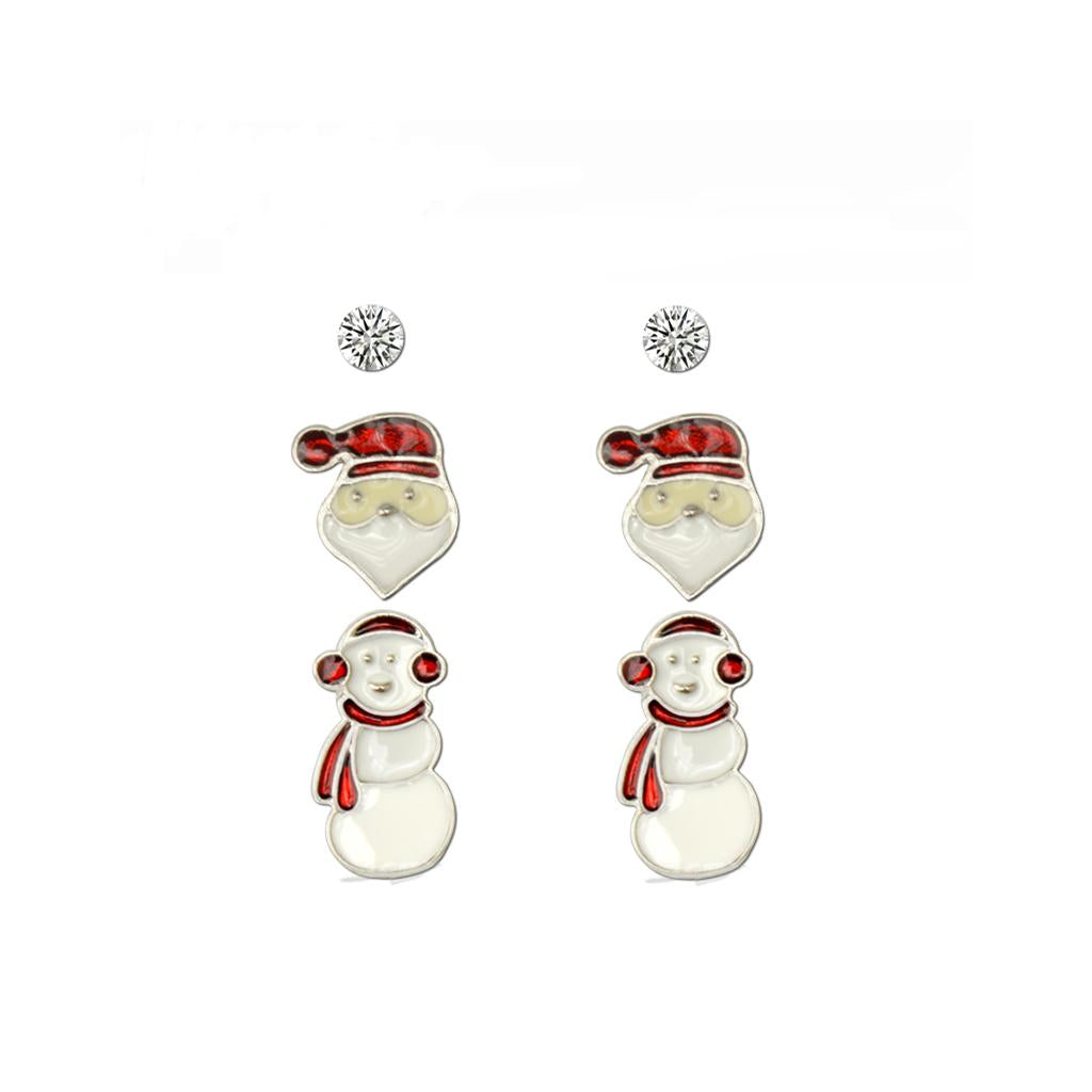 3 Pairs of Earrings Christmas Gift Santa Snowman Stud Earrings Earrings Set
