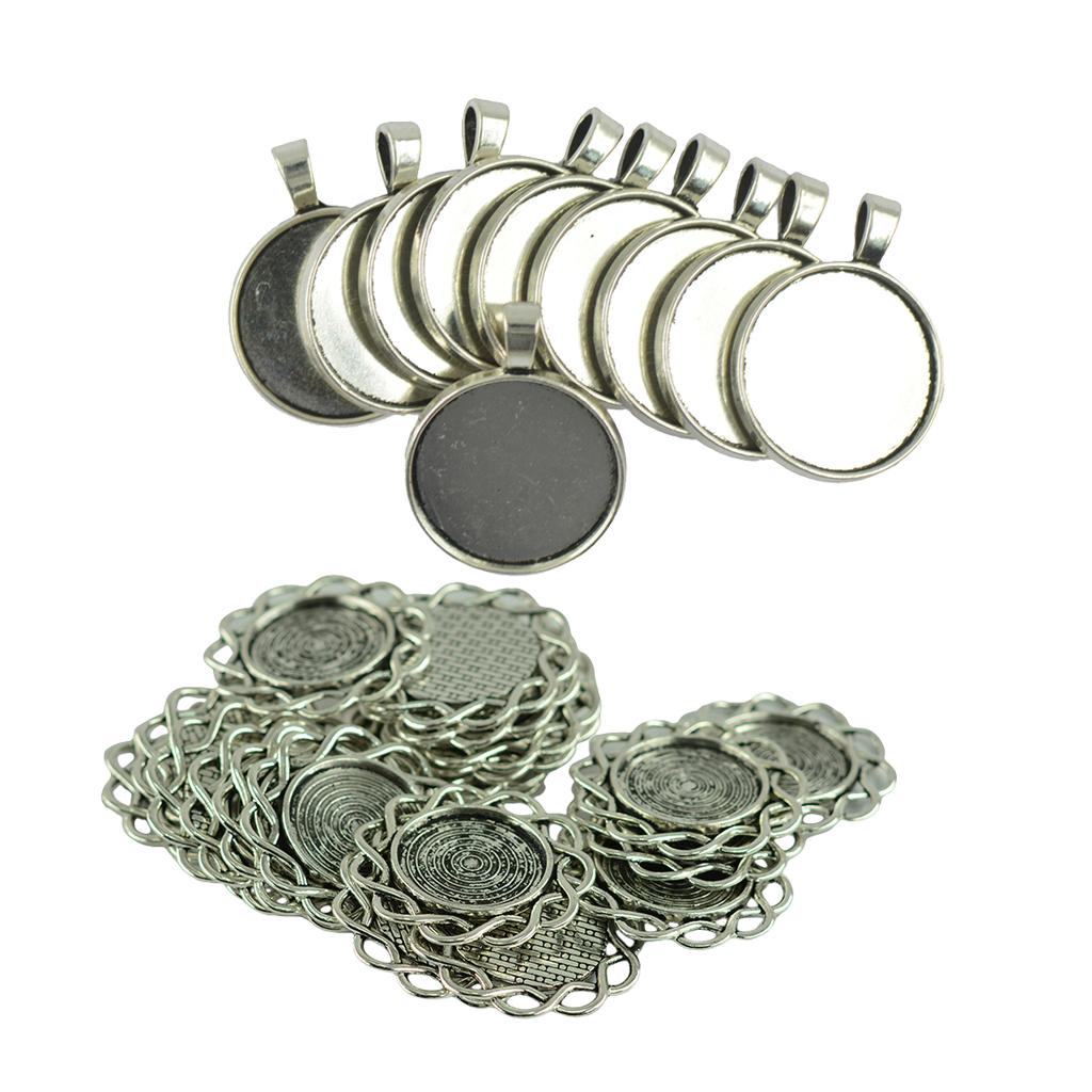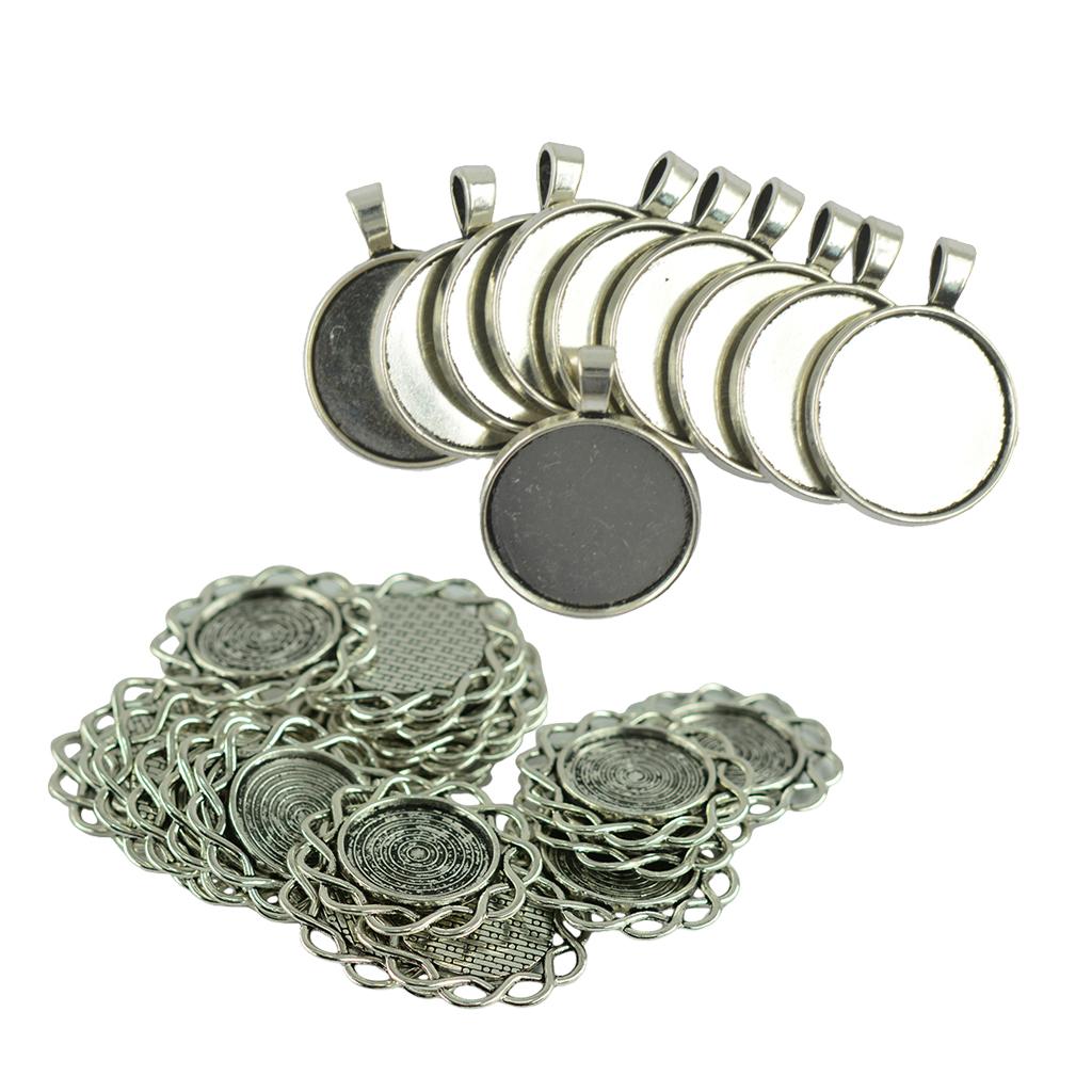 30 Pieces Antique Round Cabochon Setting Necklace Pendant Tibetan Silver Jewelry Making Beads Crafts