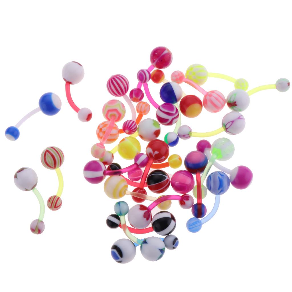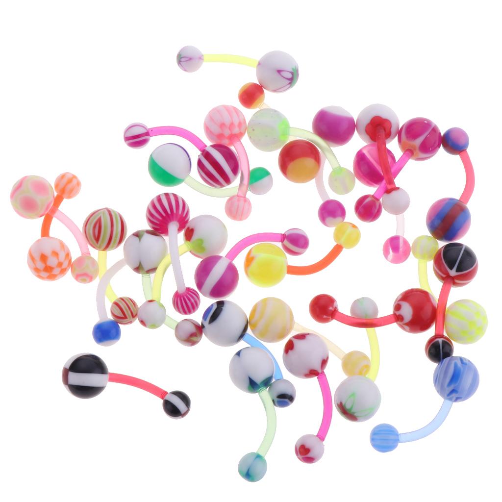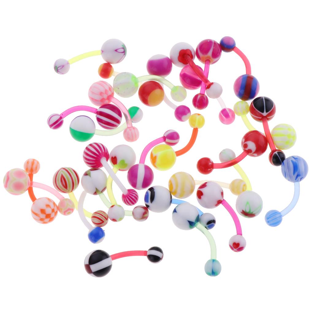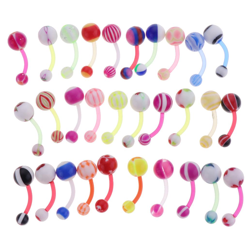 30pcs mixed lot of belly rings with acrylic balls and soft rod.