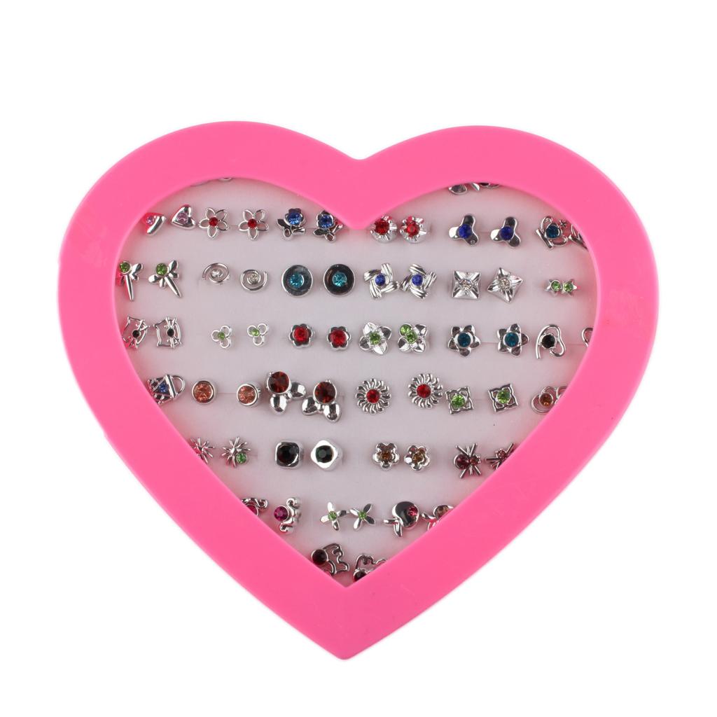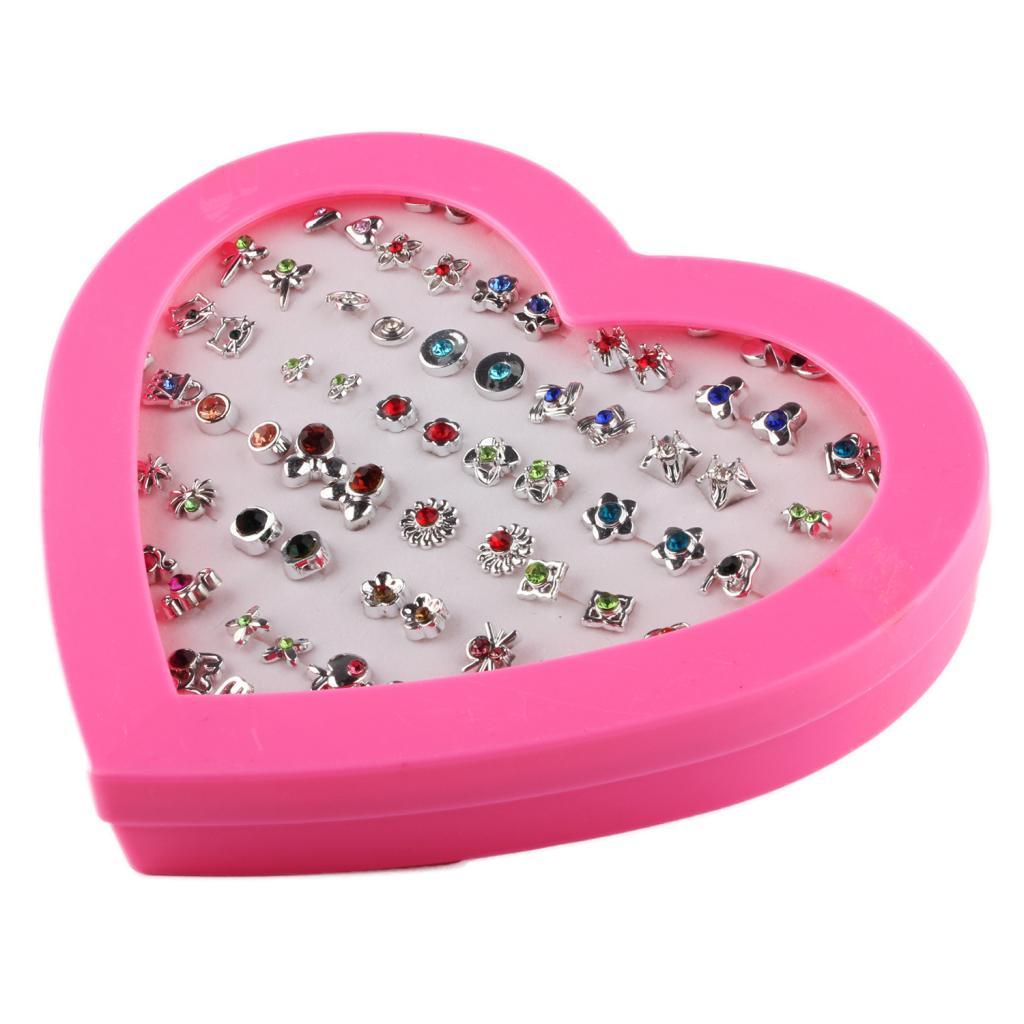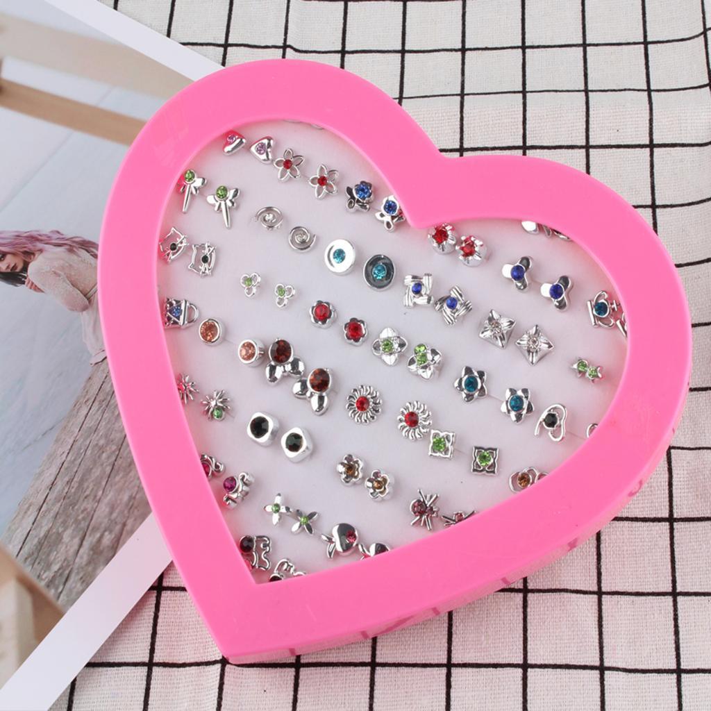 36 Pairs Cute Stud Set Love Heart Box Lady Girl Crystal Flower Earring Studs