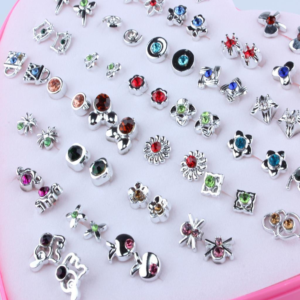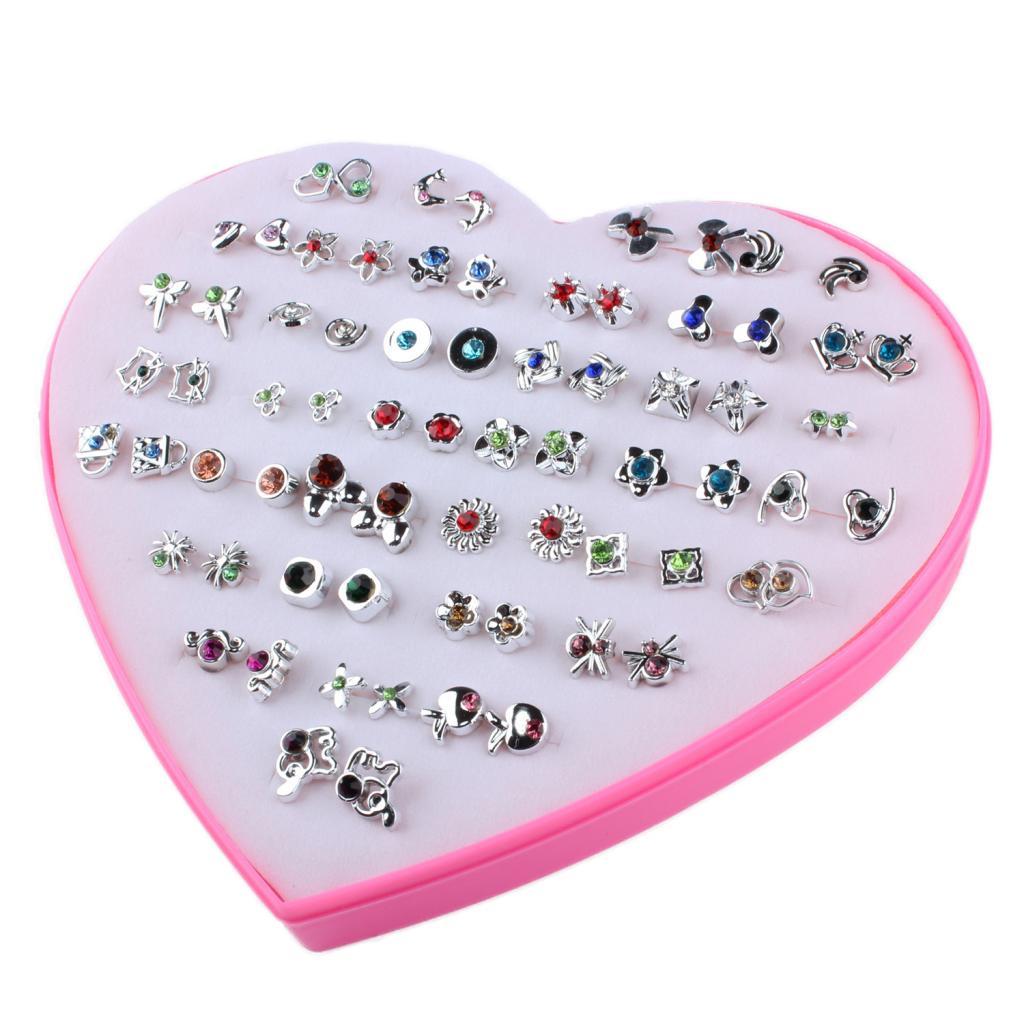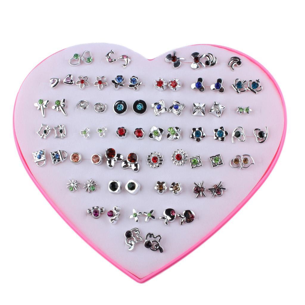 36 Pairs Cute Stud Set Love Heart Box Lady Girl Crystal Flower Earring Studs