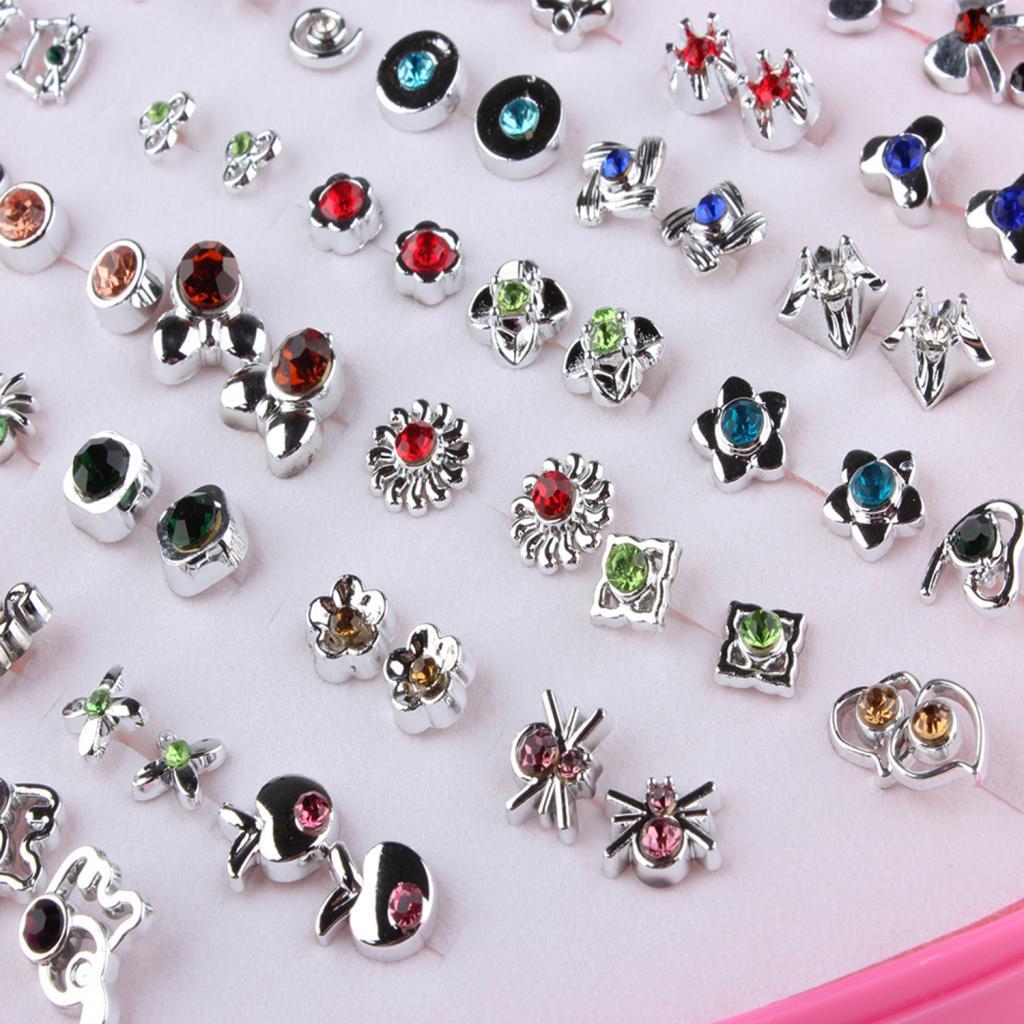36 Pairs of multi-color assorted crystal flower studs, suitable for everyone who want to become more beautiful whether you are a school girl or an office lady.