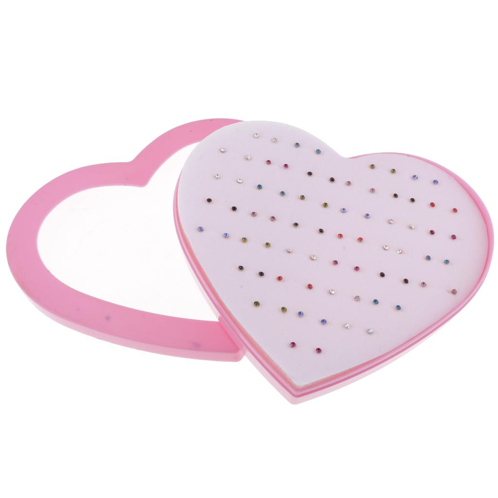 36 Pairs Mixed Color Shiny Rhinestone Stud Earrings Set Love Heart Box Organizer