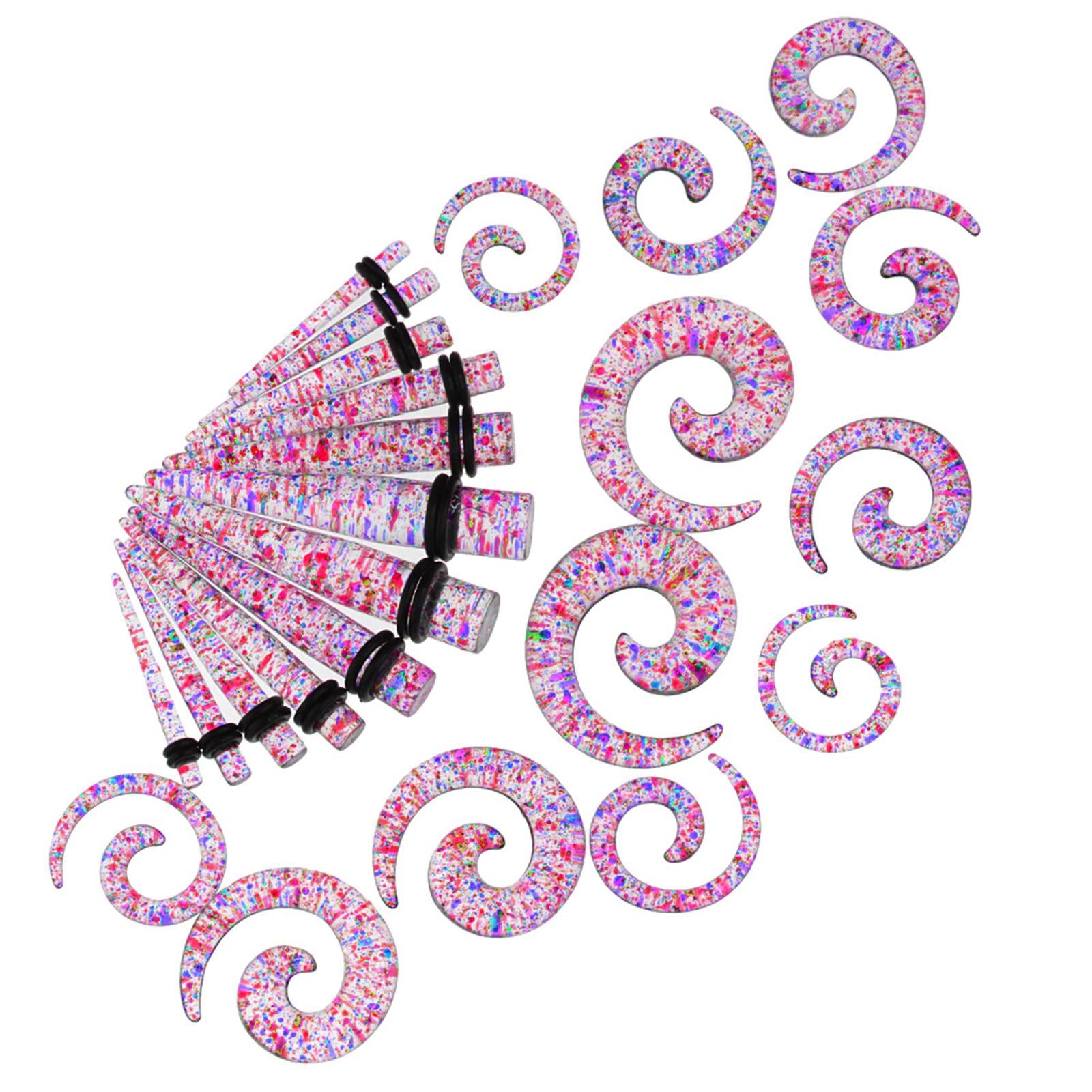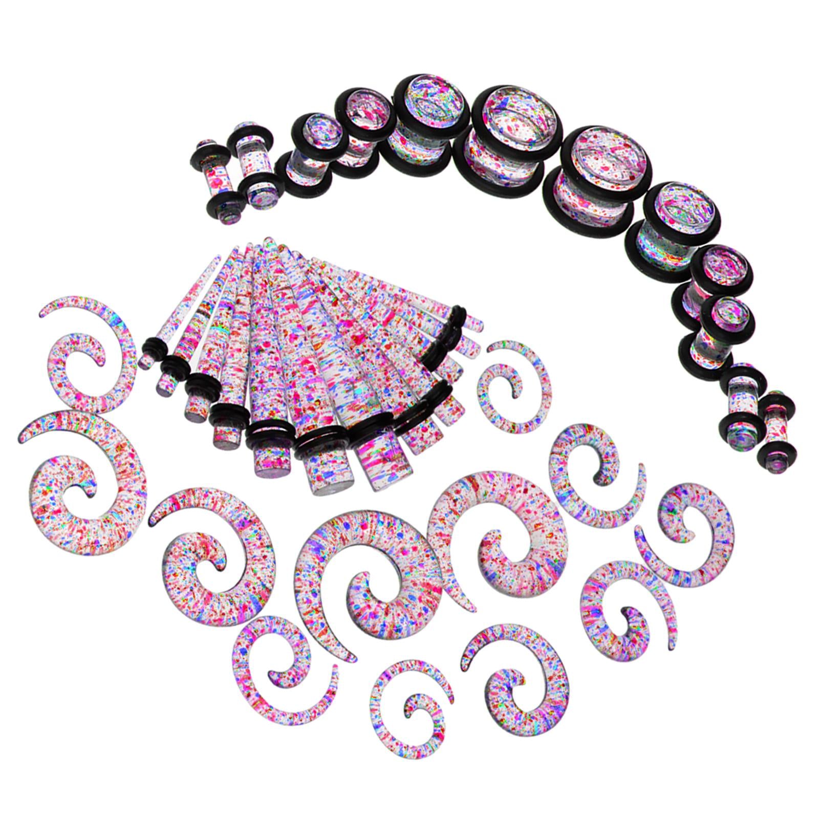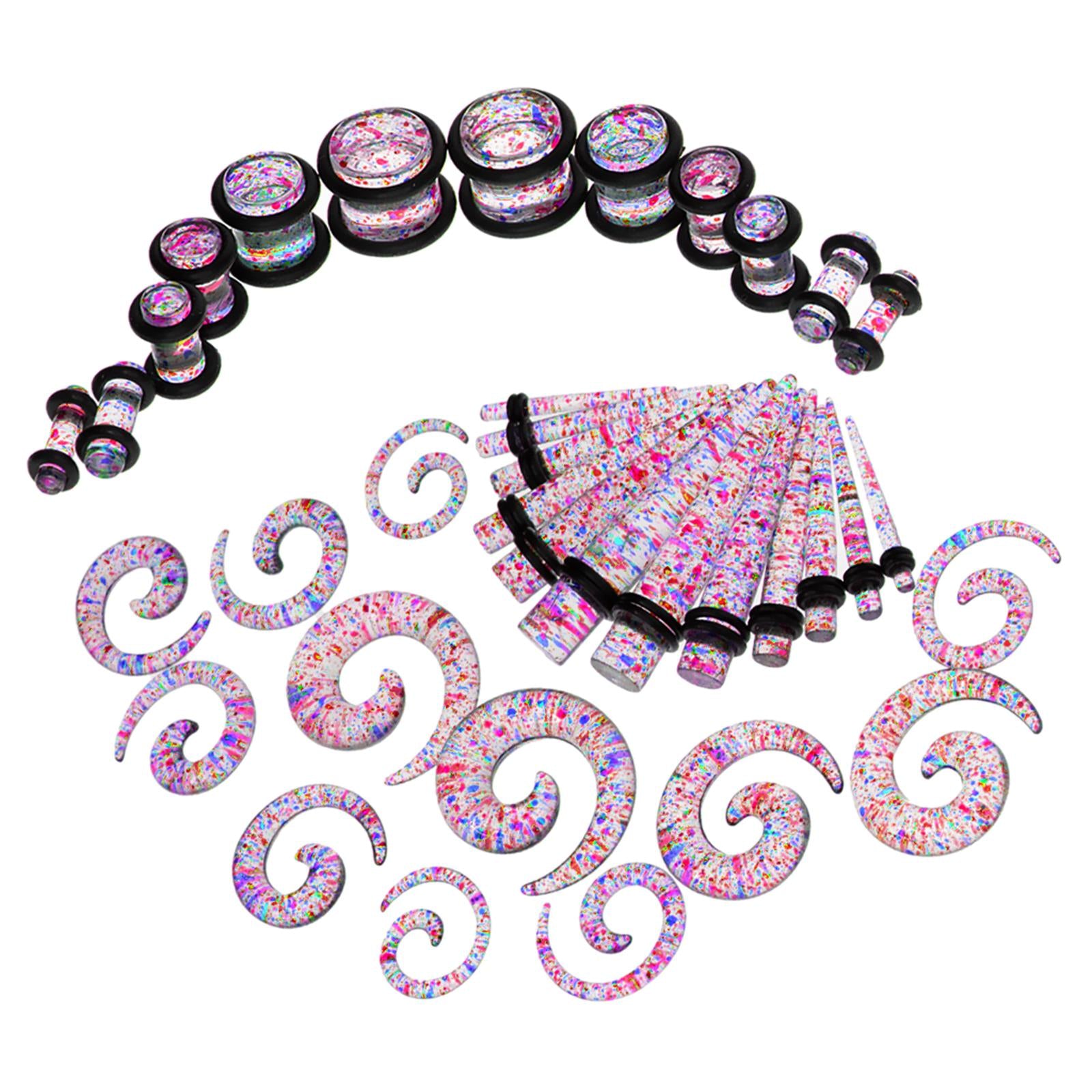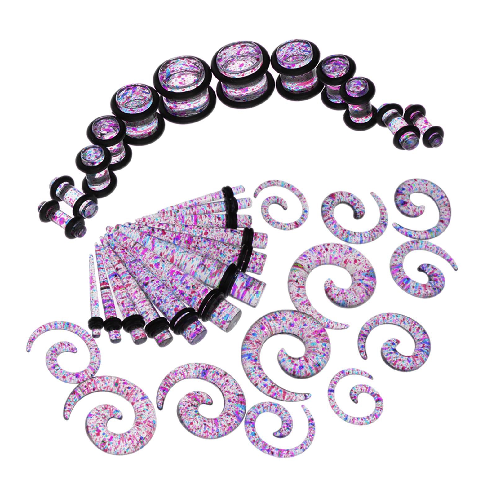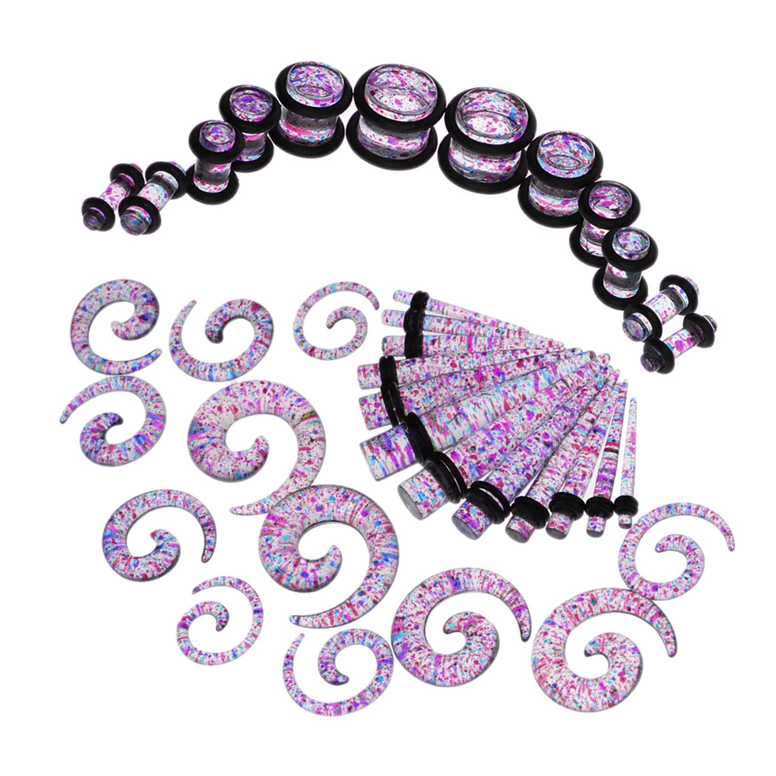You will receive 36 Pieces ,12 Pieces Acrylic Ear Taper Stretching Kit 8G - 00G And 12 Pieces Acrylic Double O-Ring Plug Set 8G - 00G Ear Expander Kit,12 Pieces Spiral Ear Stretcher