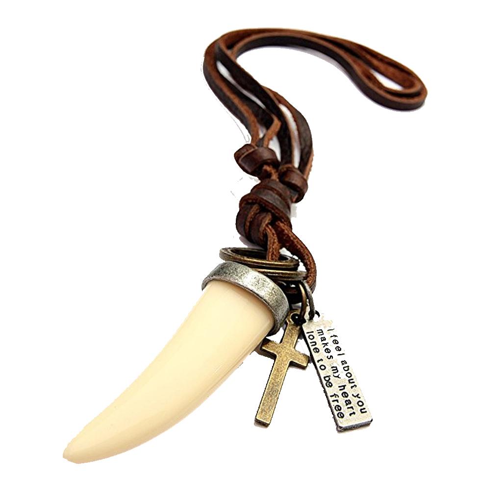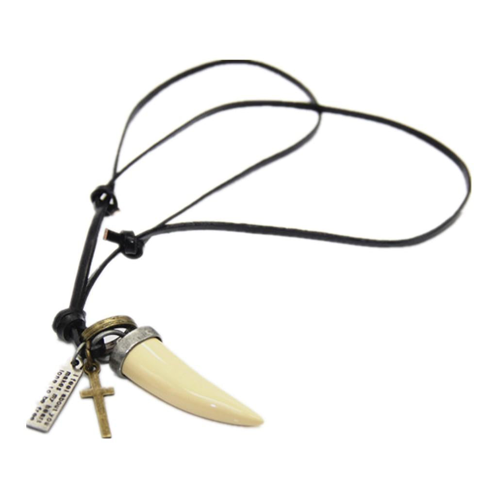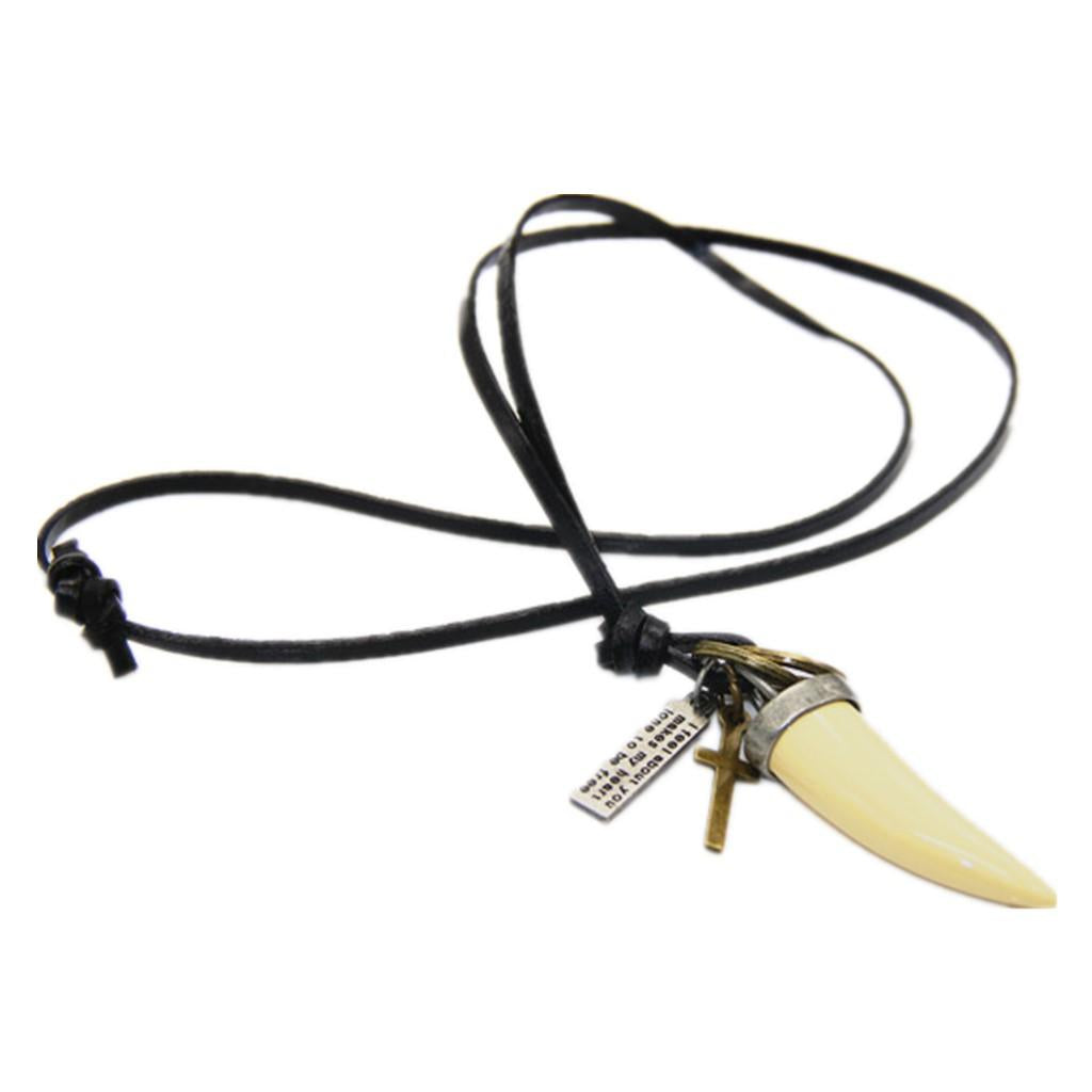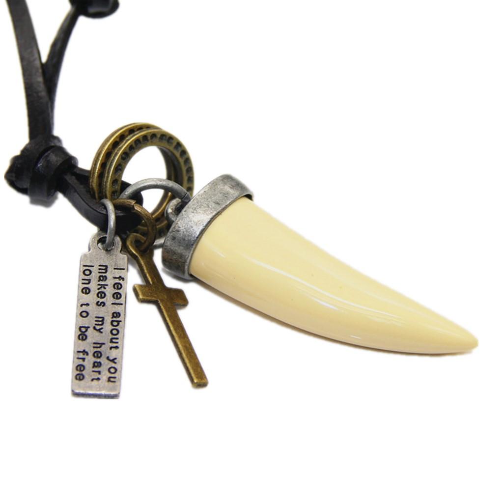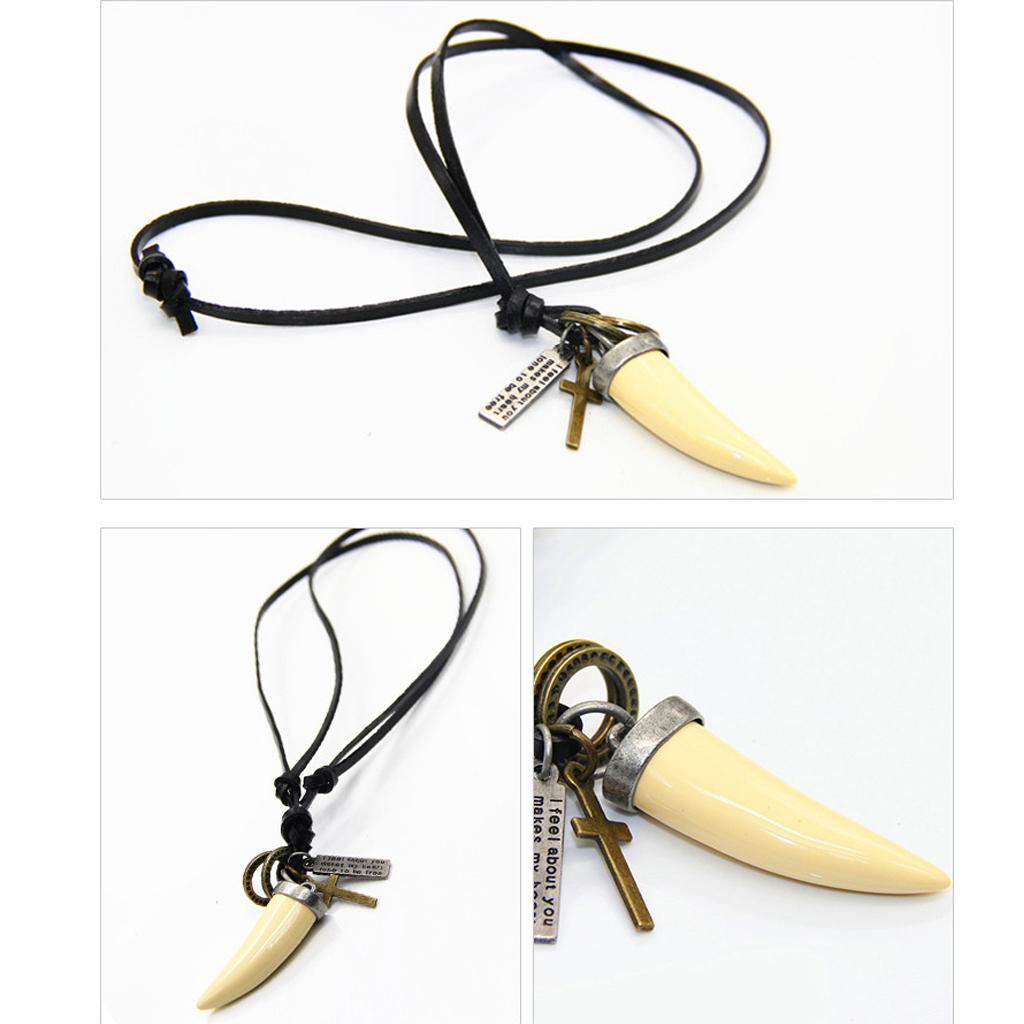 Beige tone Crescent teeth & Cross, tags pendants necklace jewelry
