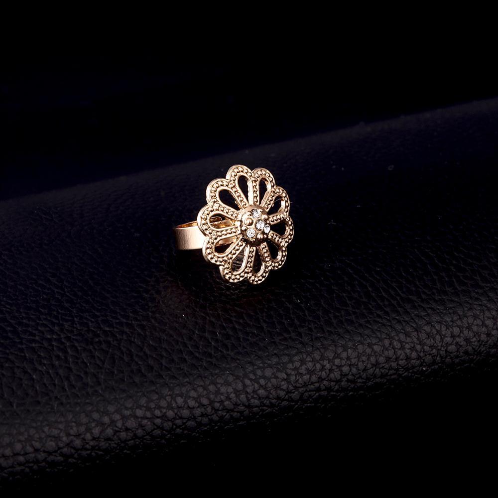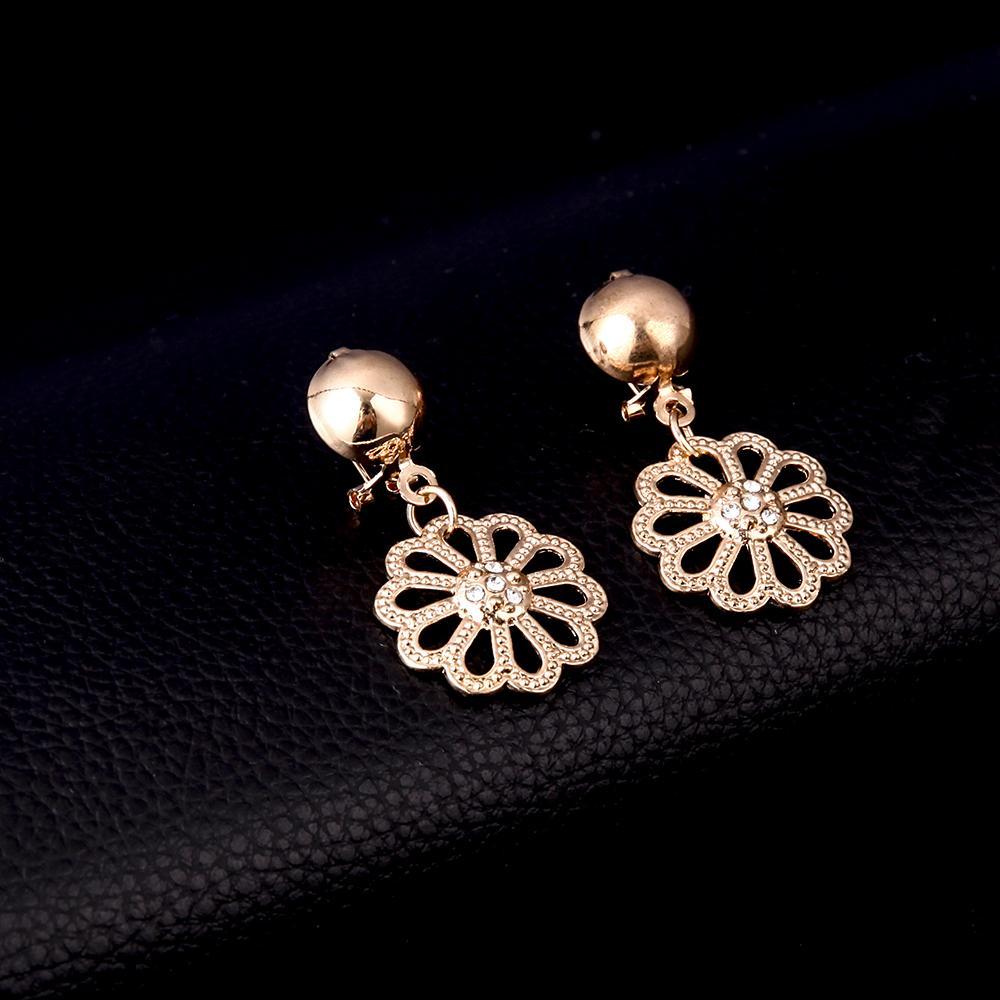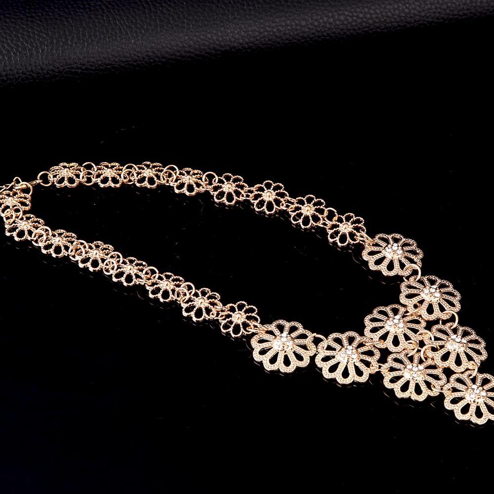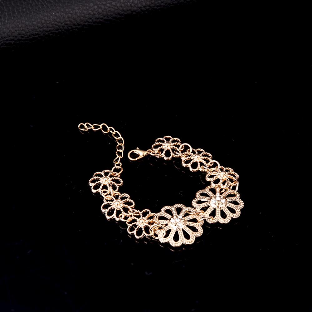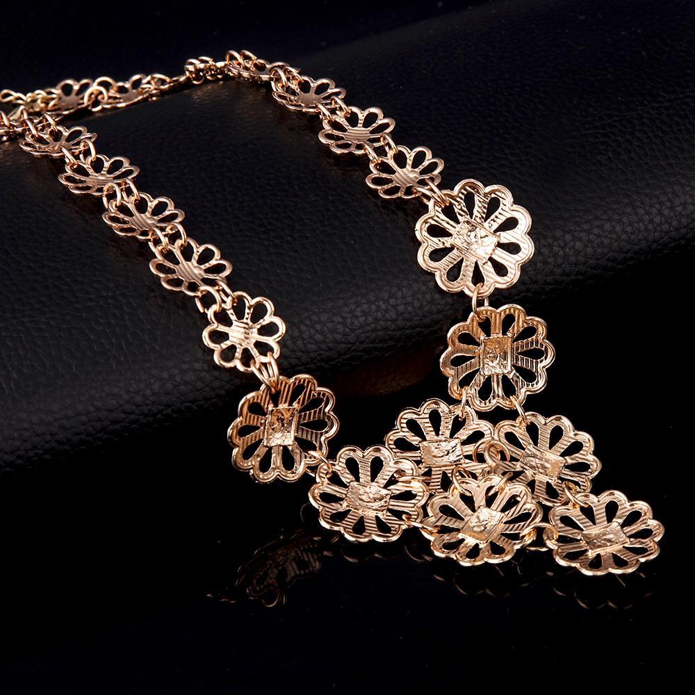 4 in 1 Alloy Flower Hollow Necklace Bracelet Ring Earrings Jewelry Set Gold