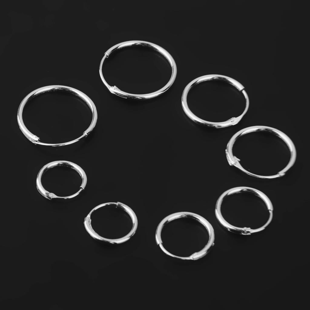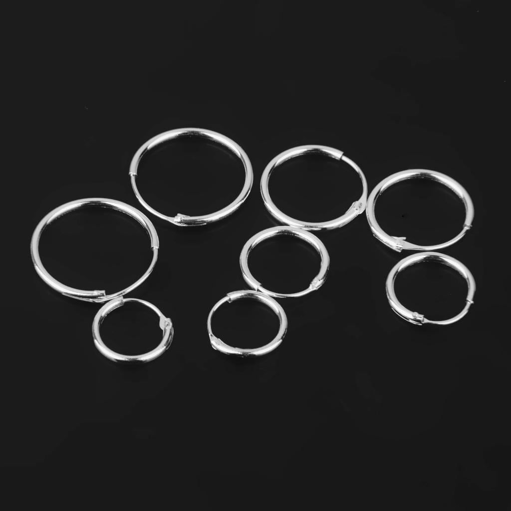 4 Pairs 925 Sterling Silver Endless Round Hoops Sleeper Earrings Ear Jewelry 8 10 12 14mm