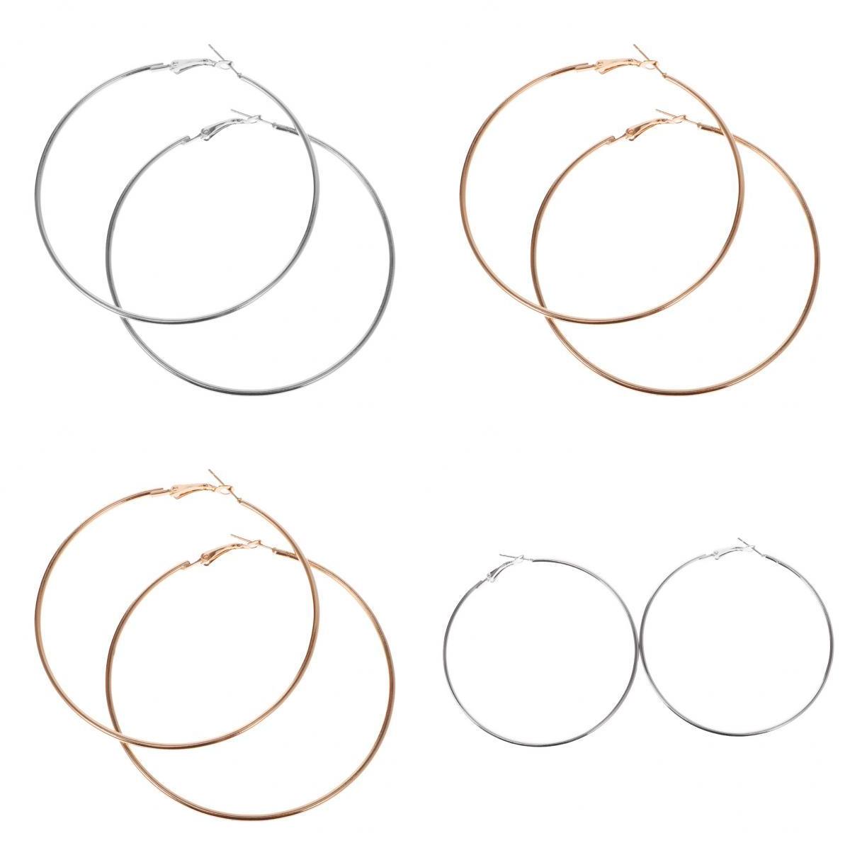 Package includes Hoop Earrings Diameter in 95mm, 70mm sizes and gold silver color