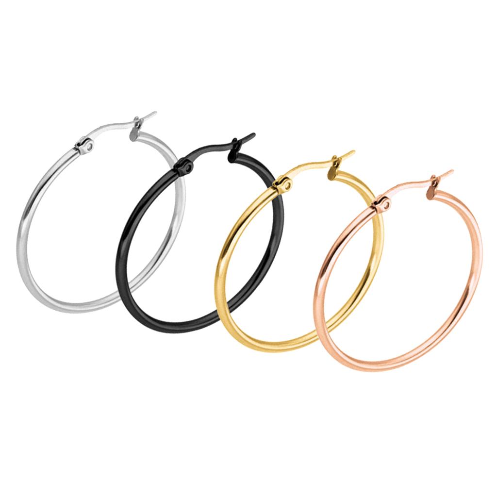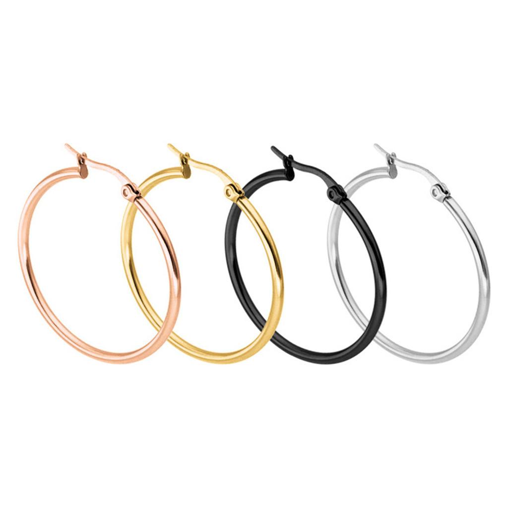 4 Pieces multi colors (Black,Silver,Gold,Rose Gold) hoop earrings,high polished durable stainless steel.