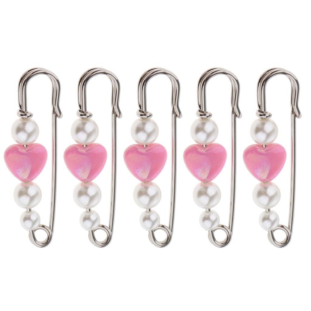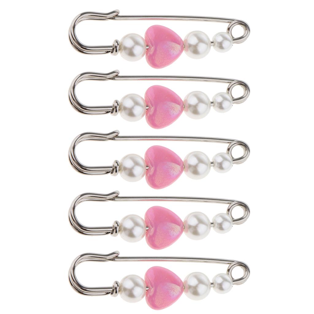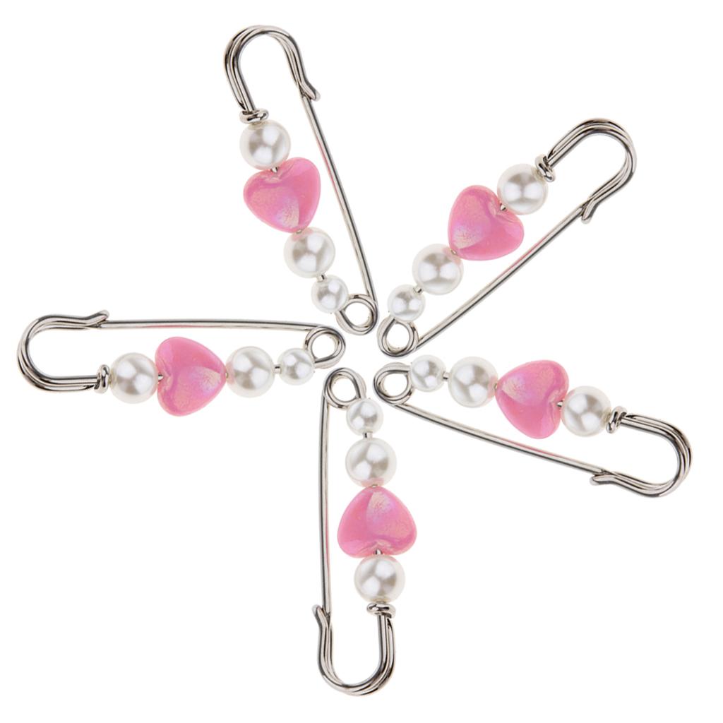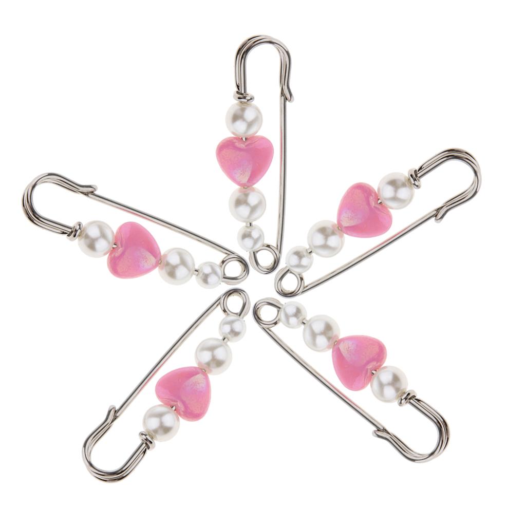 5 Pieces Imitation Pearls Safety Pin Brooch Pin Clip for Scarf Gown Pink