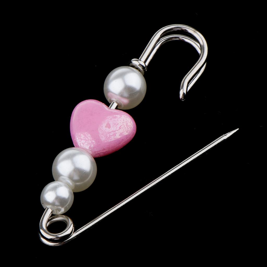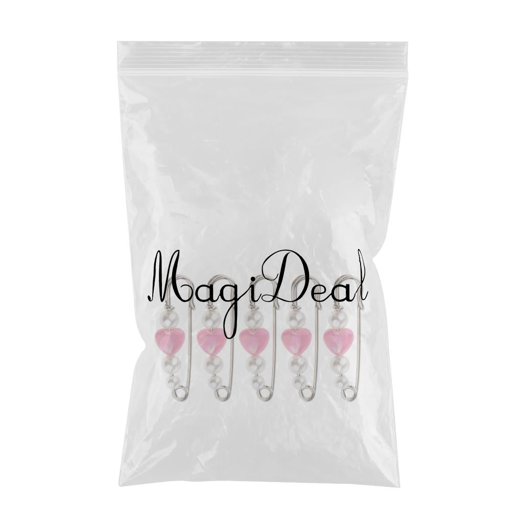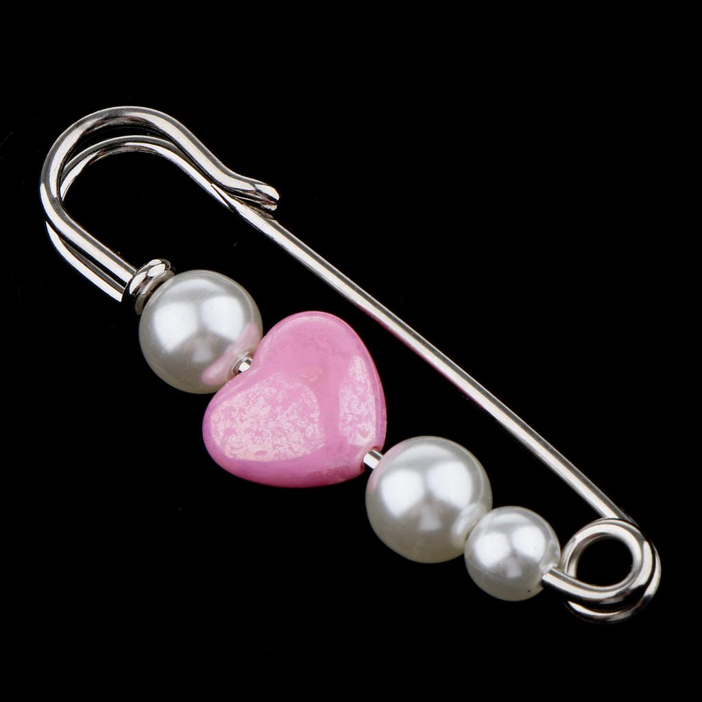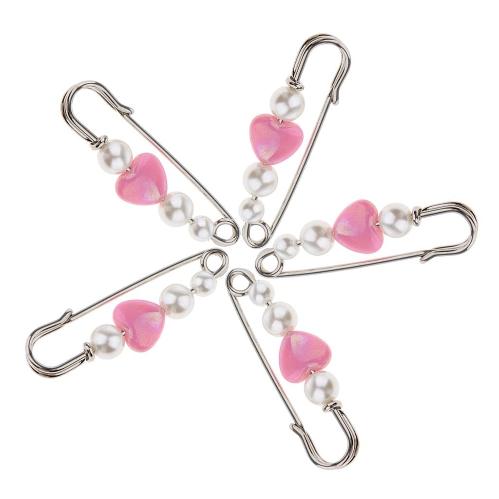 5 Pieces Imitation Pearls Safety Pin Brooch Pin Clip for Scarf Gown Pink