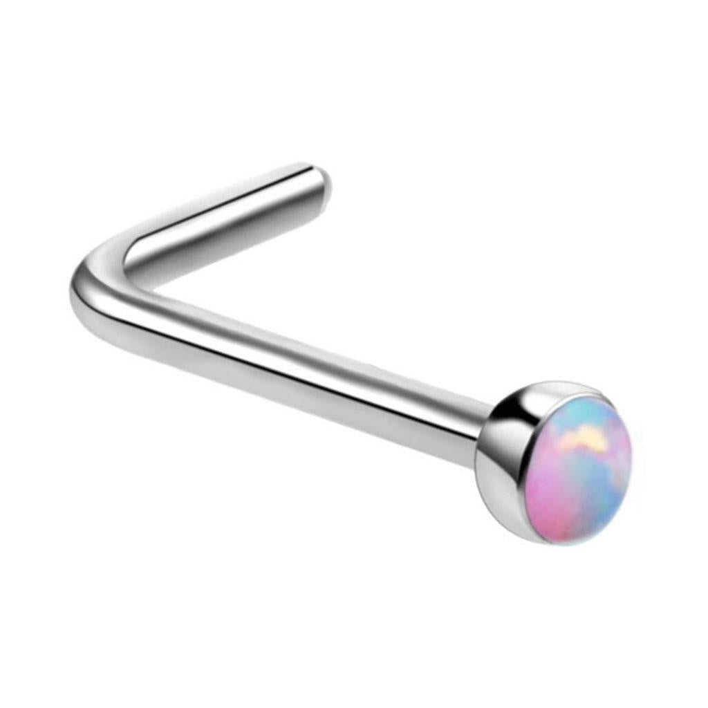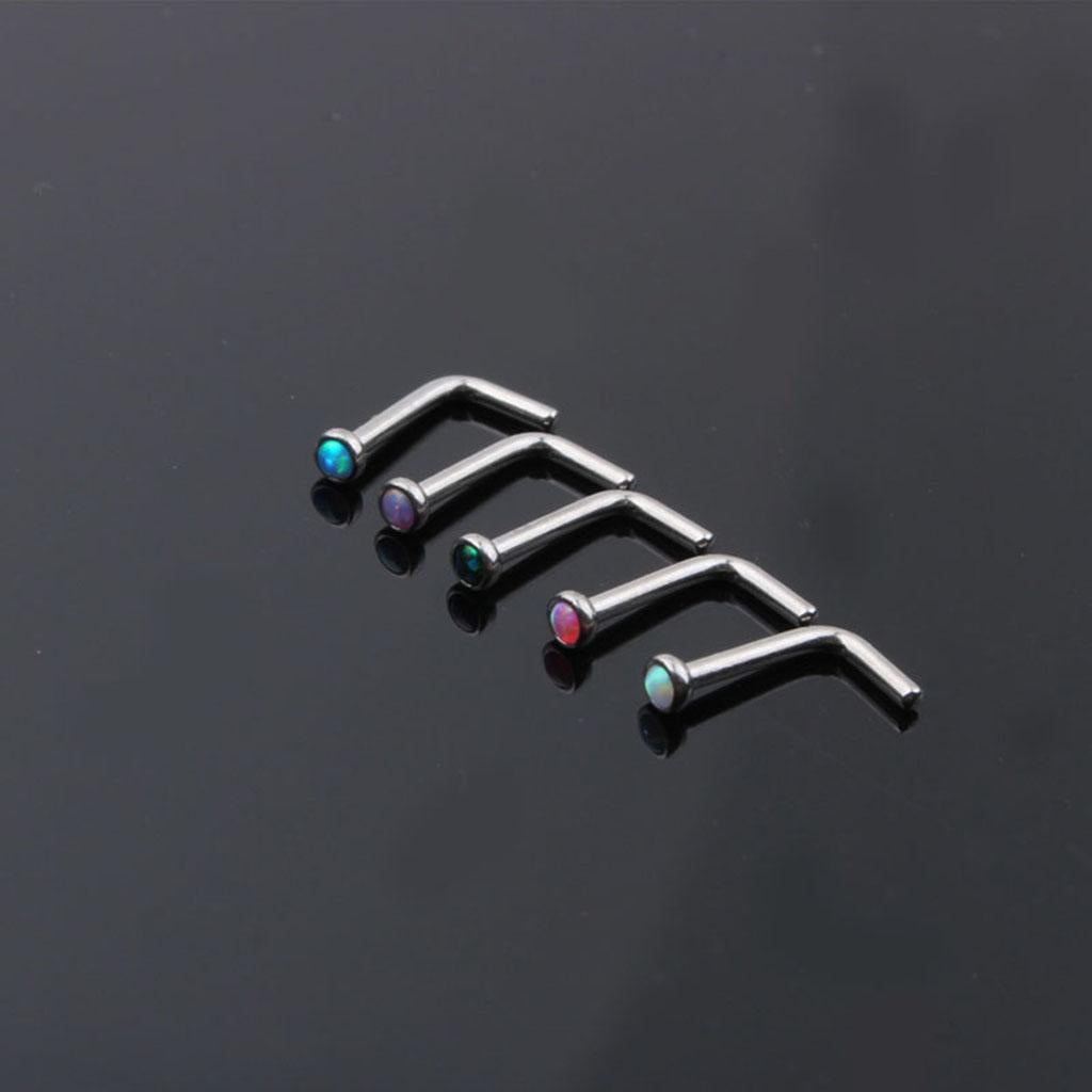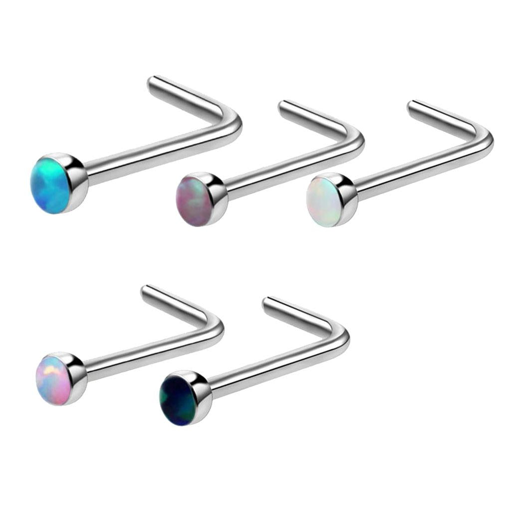 The nose rings are in curved L shape, easy to twist in your nose and take out, fashion and beautiful, and the synthetic opal is very shiny and special.