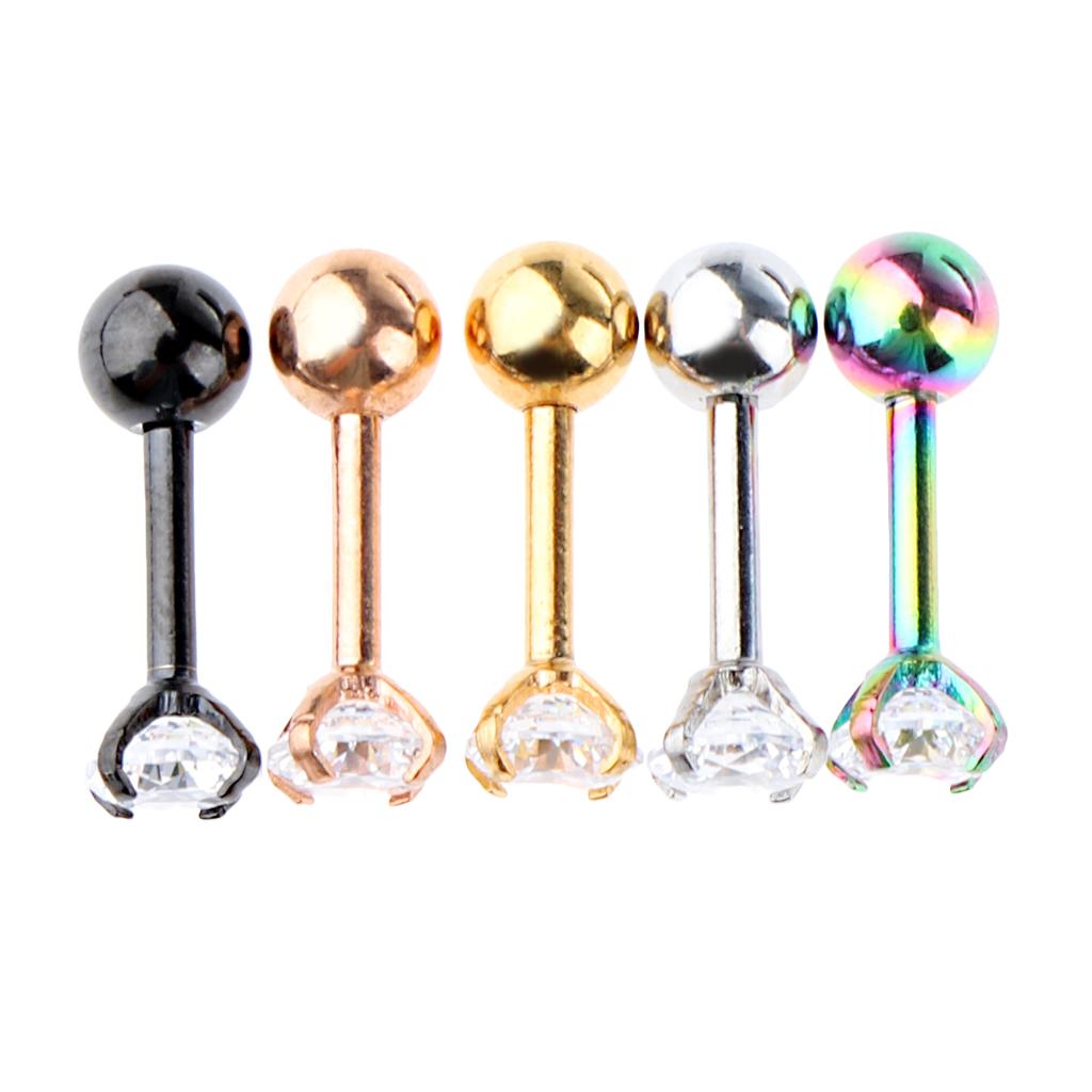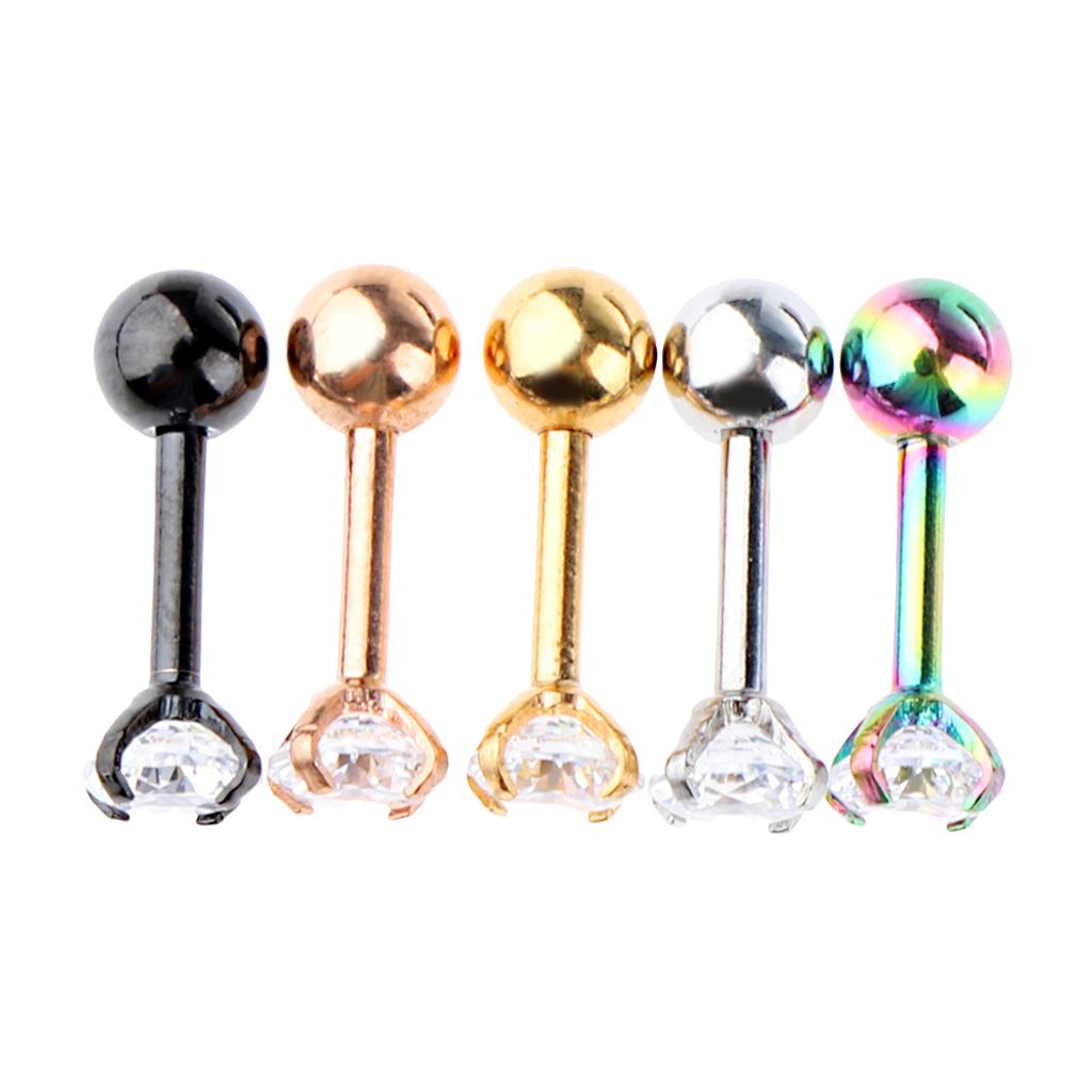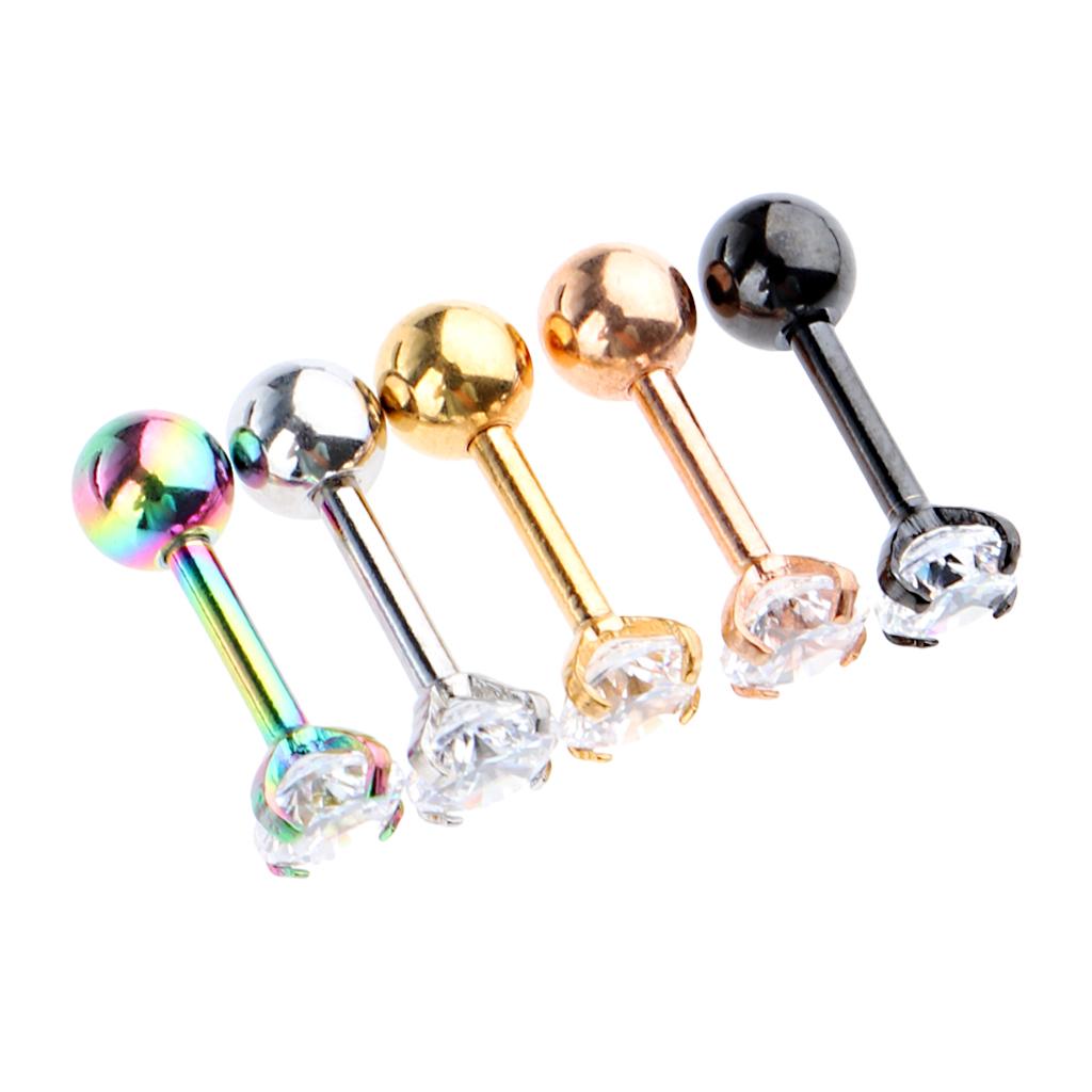 5 Pieces Stainless Steel Rhinestone Labret Lip Ear Earring 16g Round Crystal