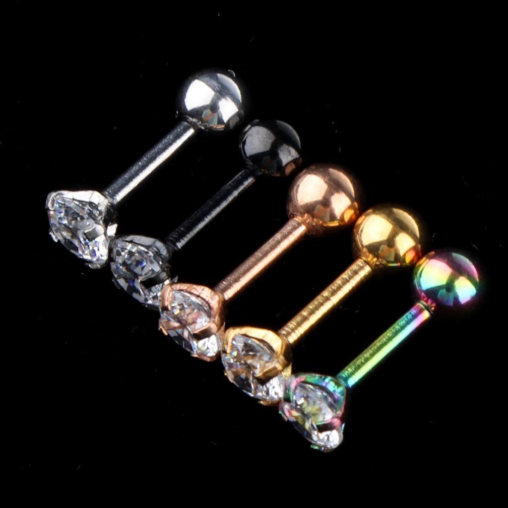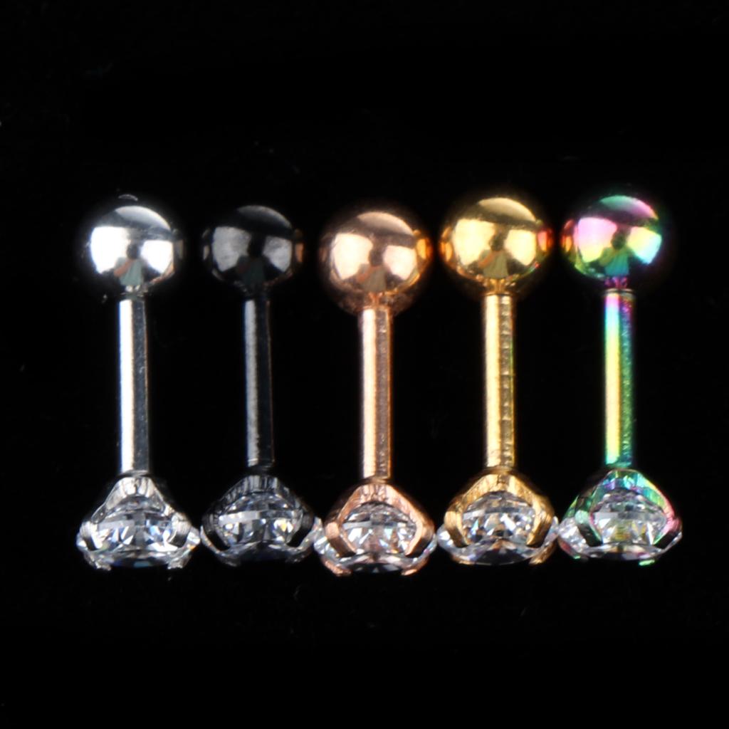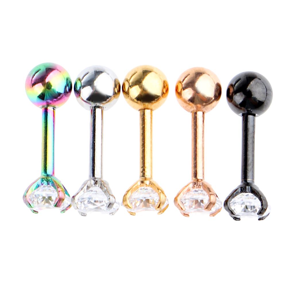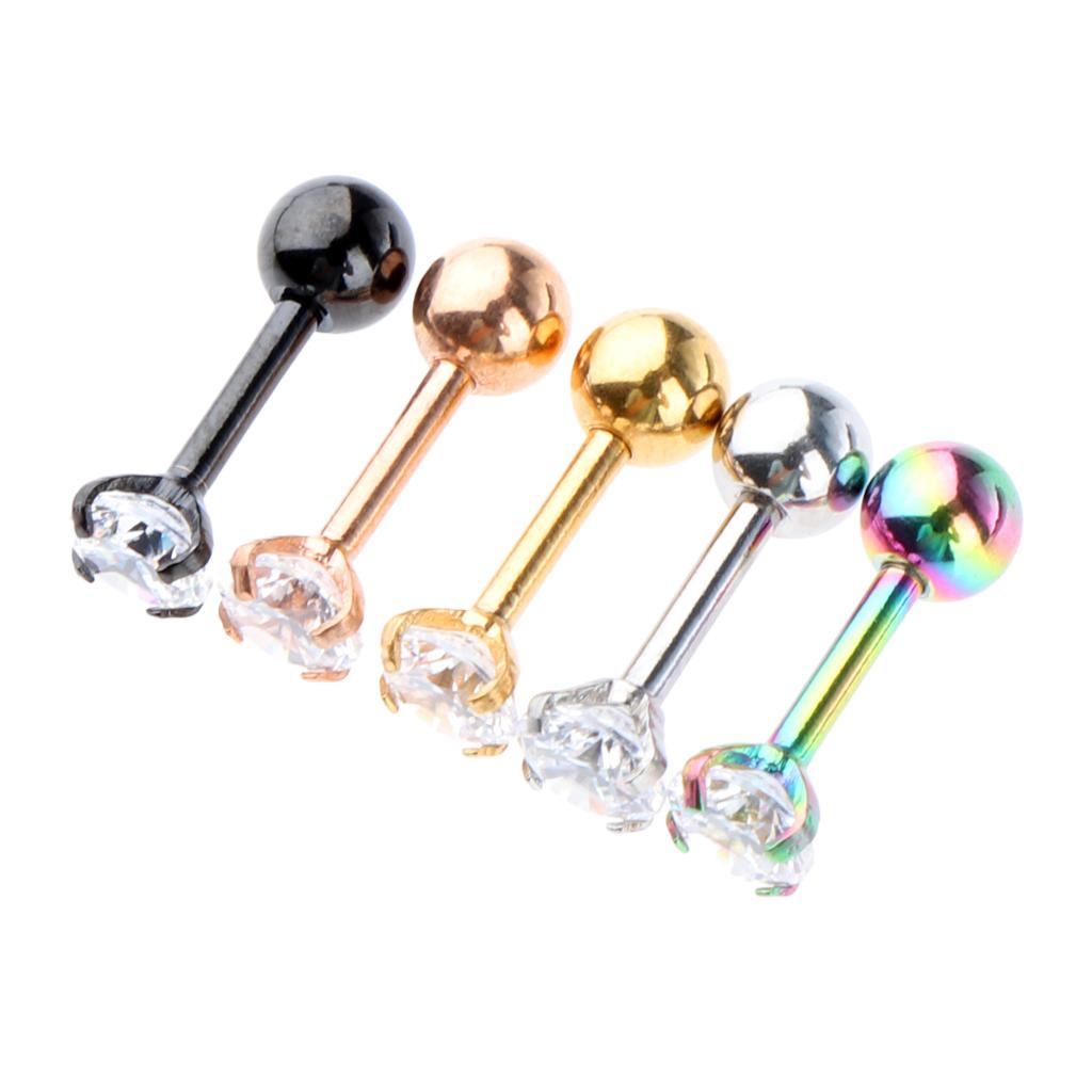 5 Pieces Stainless Steel Rhinestone Labret Lip Ear Earring 16g Round Crystal