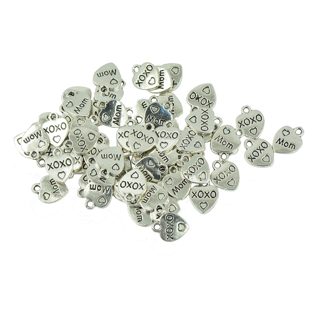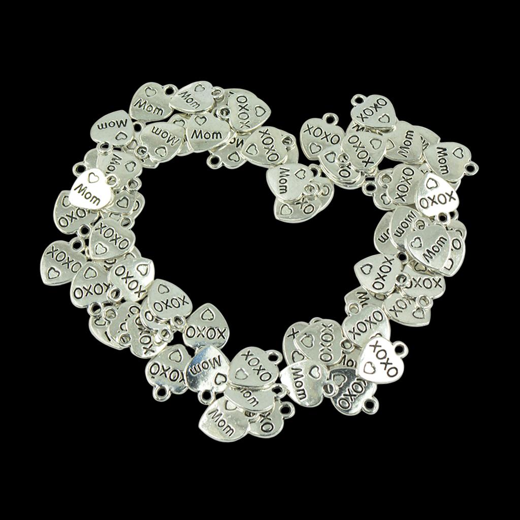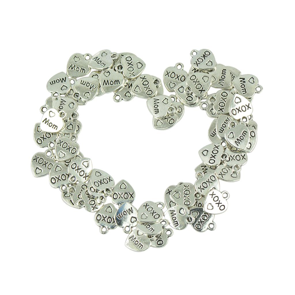 50 Pieces I love MOM XOXO Heart Charms Pendants