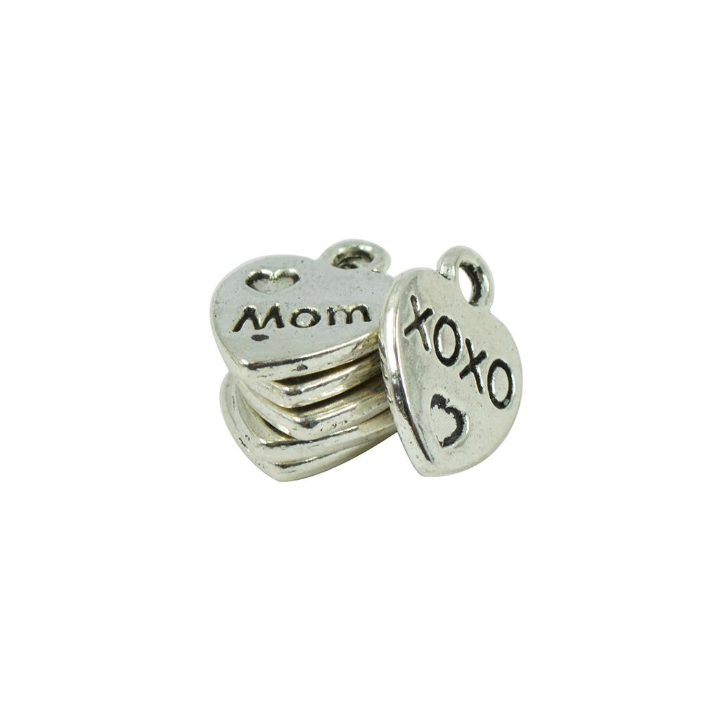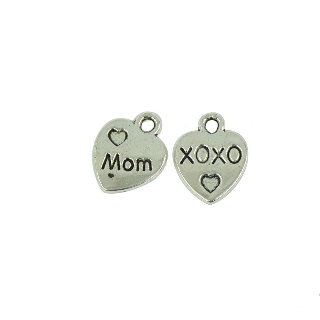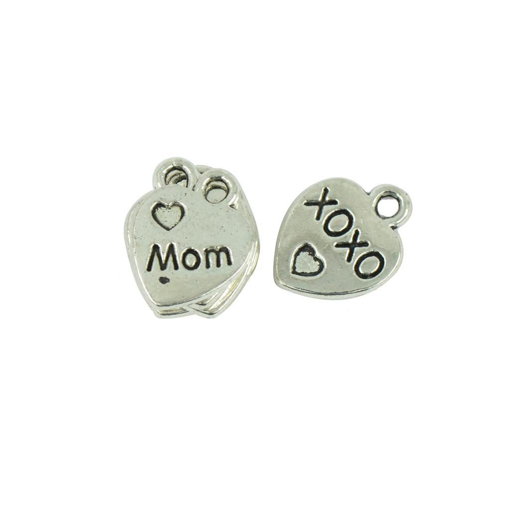 50 Pieces I love MOM XOXO Heart Charms Pendants