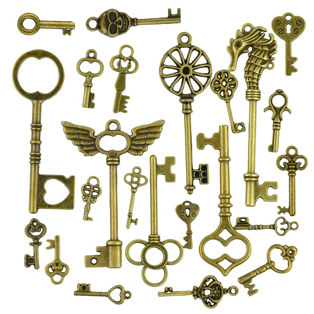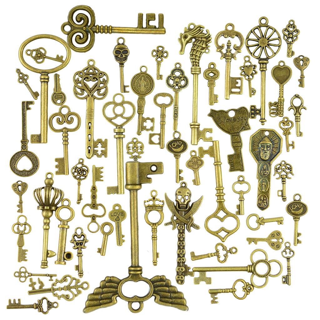 50 Mixed Vintage Bronze Key Charms Pendant. Each bag of 50 charms is for a random selection of Key charms, very similar to the charms depicted in the photo.