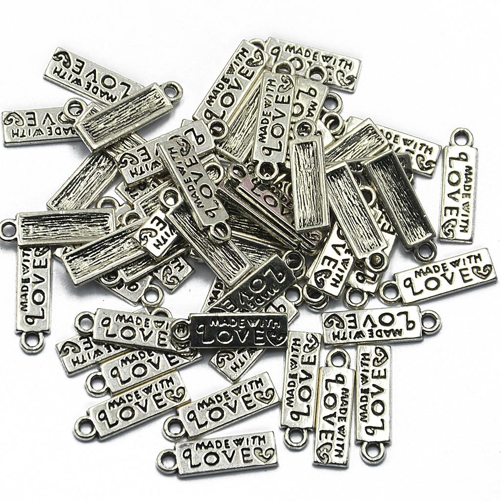 50pcs Tibet Silver MADE WITH LOVE Heart Rectangle Heart Charms Pendant