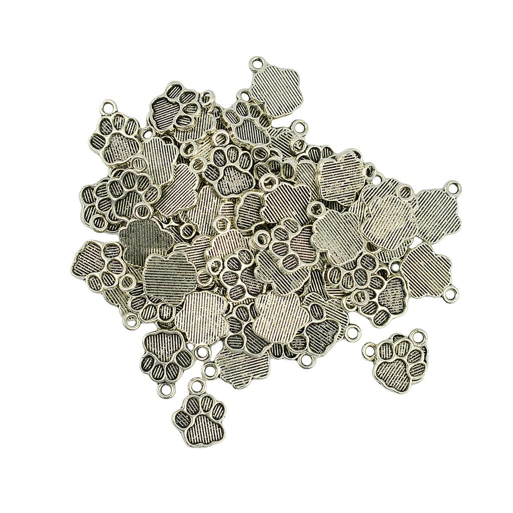 50pcs Tibetan Silver Cute Puppy Paw Print Charms Dangle Pendant DIY Craft