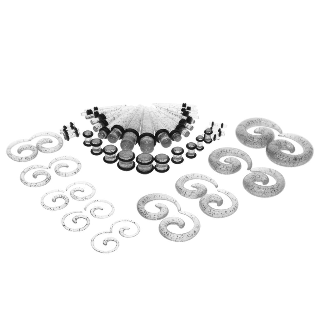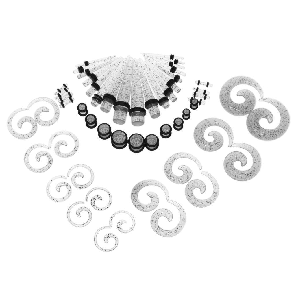 54pcs Gauges Kit Spiral Tapers and Plugs 14G-00G Stretching Kit Transparent