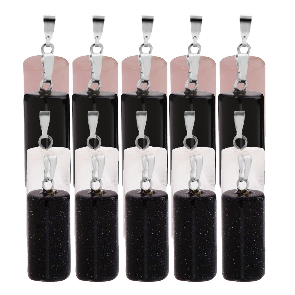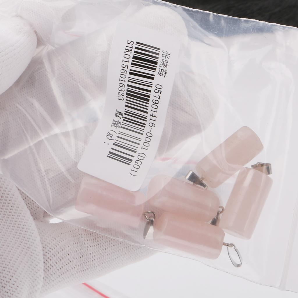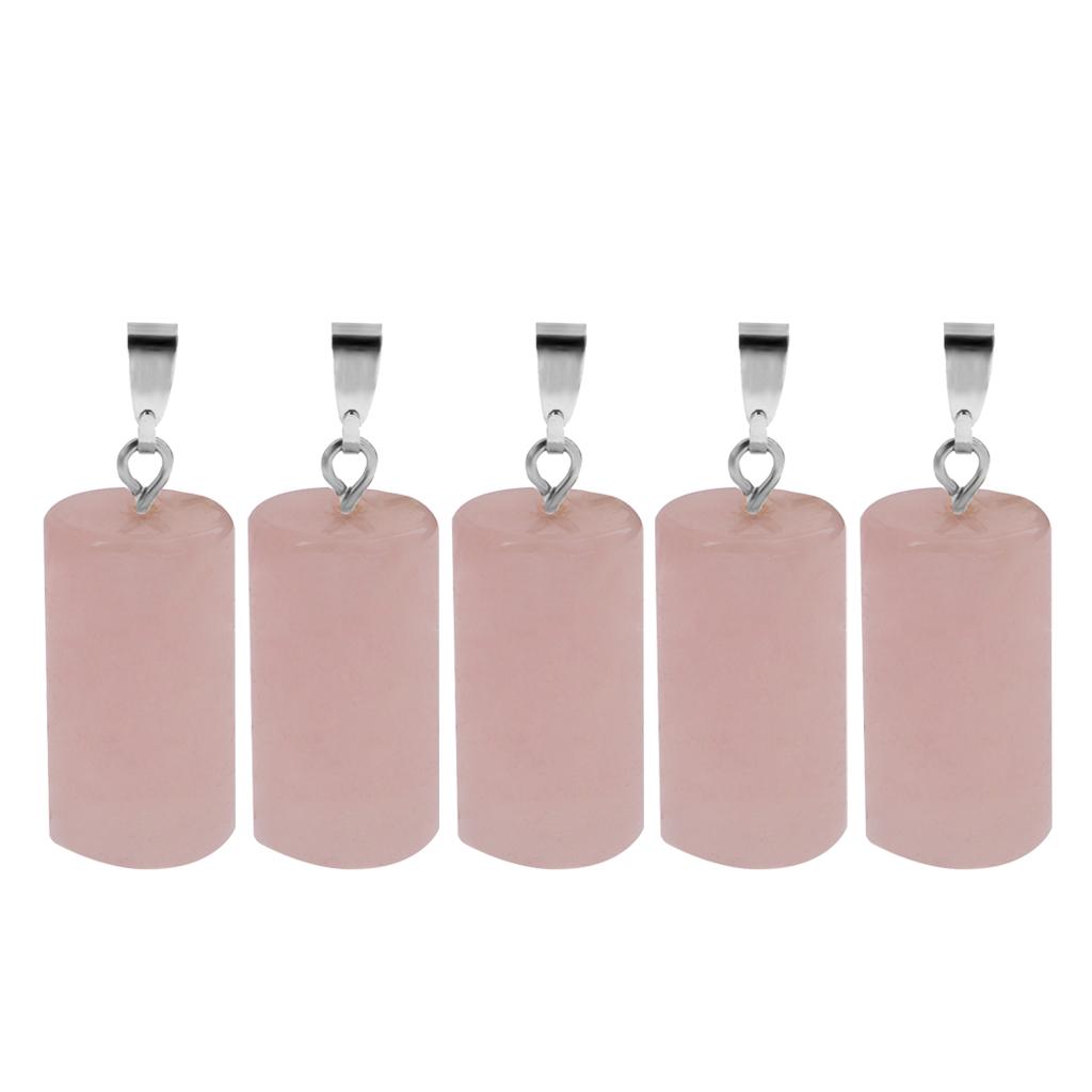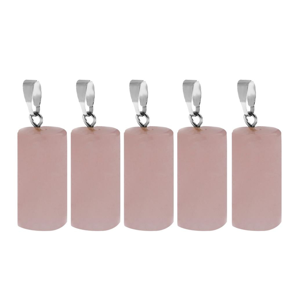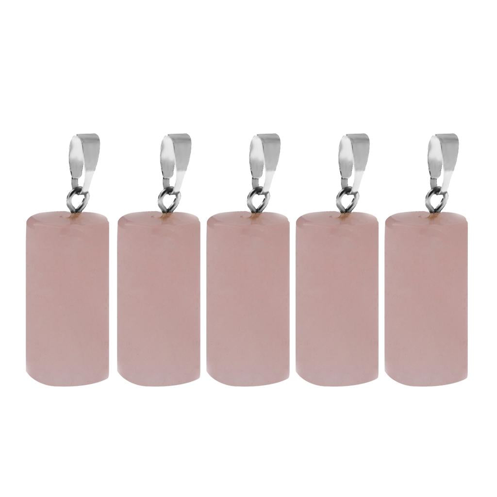 5Pcs Cylindrical Stone Gemstone Rose Quartz DIY Pendant Jewelry Pink