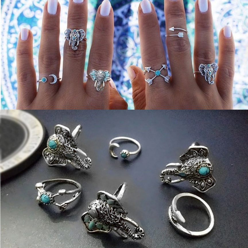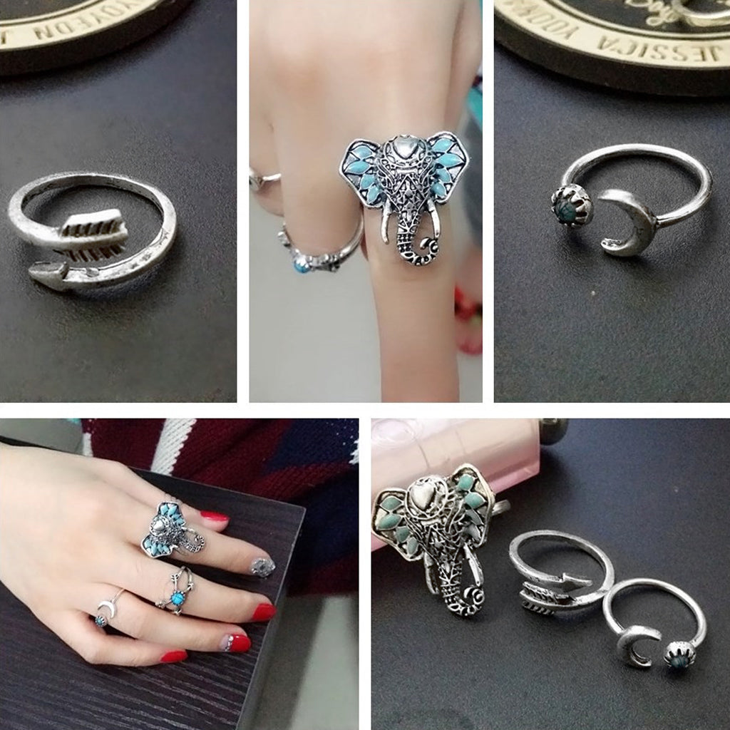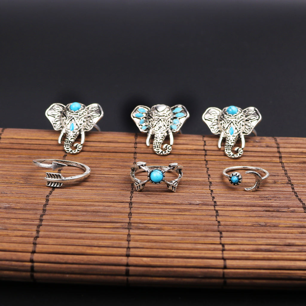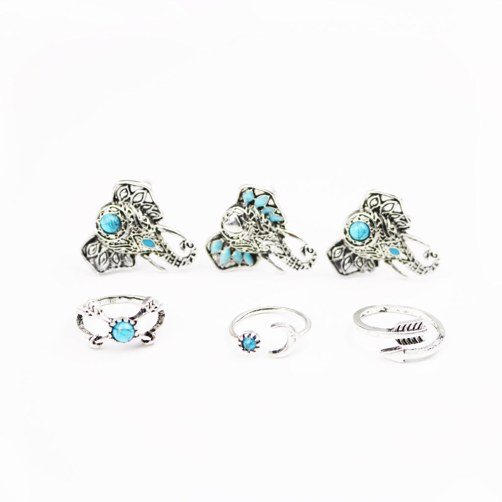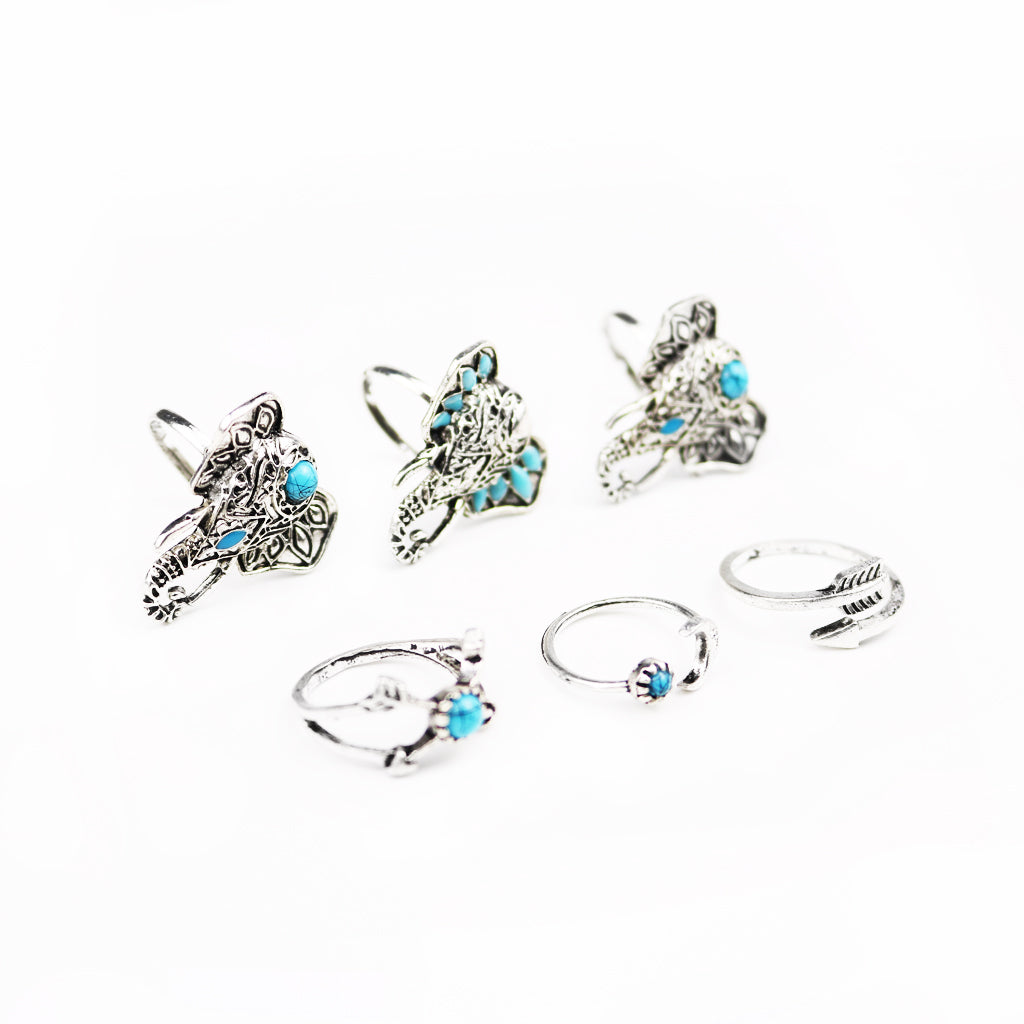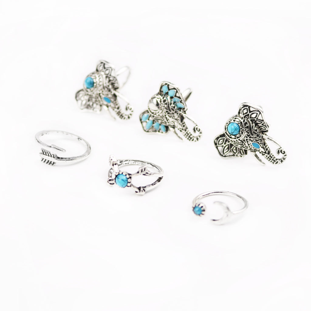 • 6 pcs Bohemia elephant style rings for unisex, tips and knuckles.