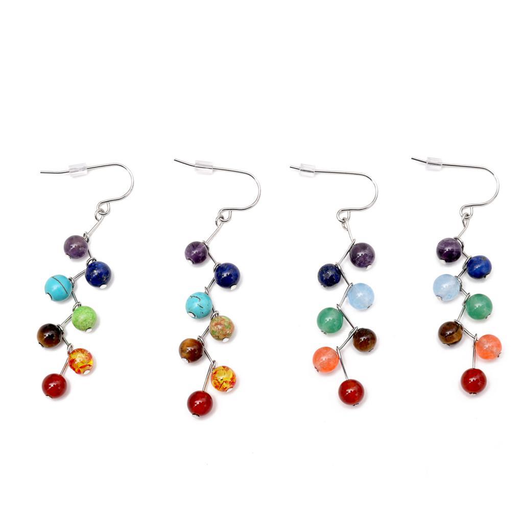 7 colorful gemstones long dangle hook earrings;Package Includes: