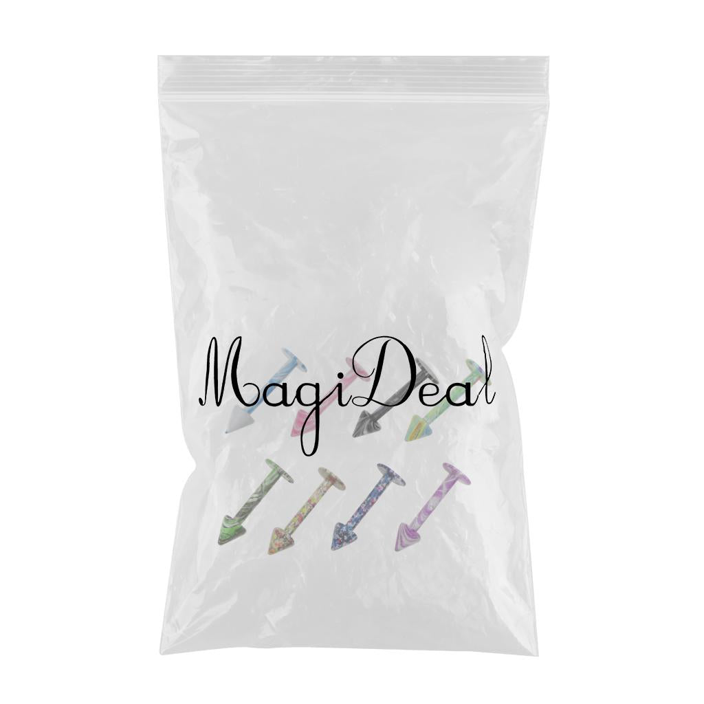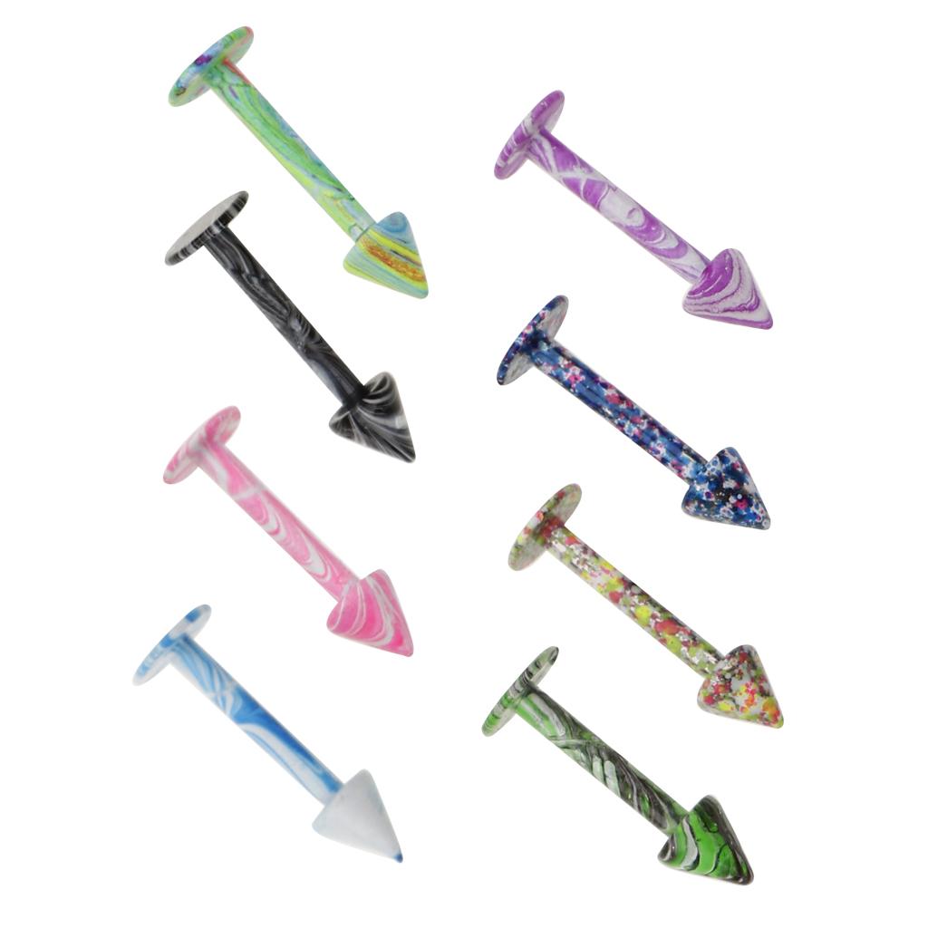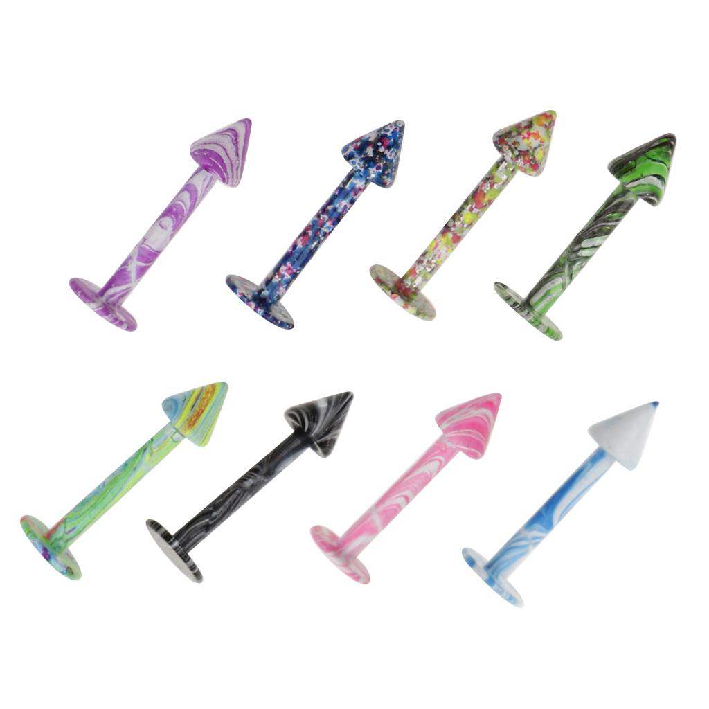 8 Pieces Punk Rock Stainless Steel Spike Tongue Labret Lip Bars Rings Piercings