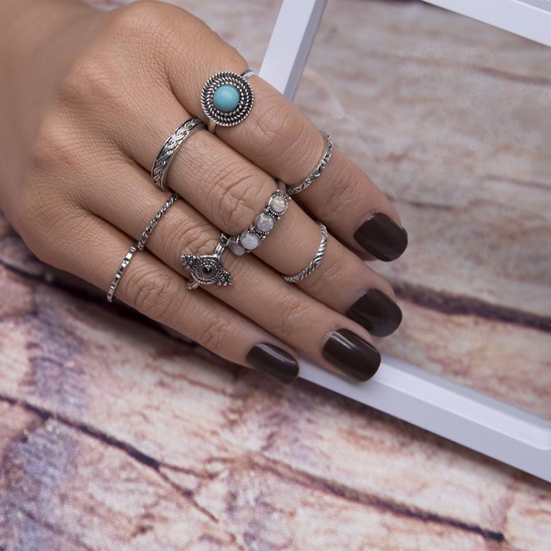 8 Pieces turquoise vintage knuckle rings stacking rings;