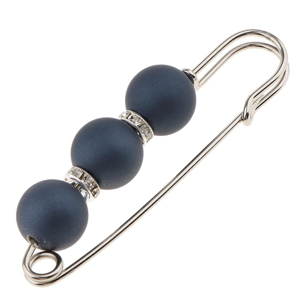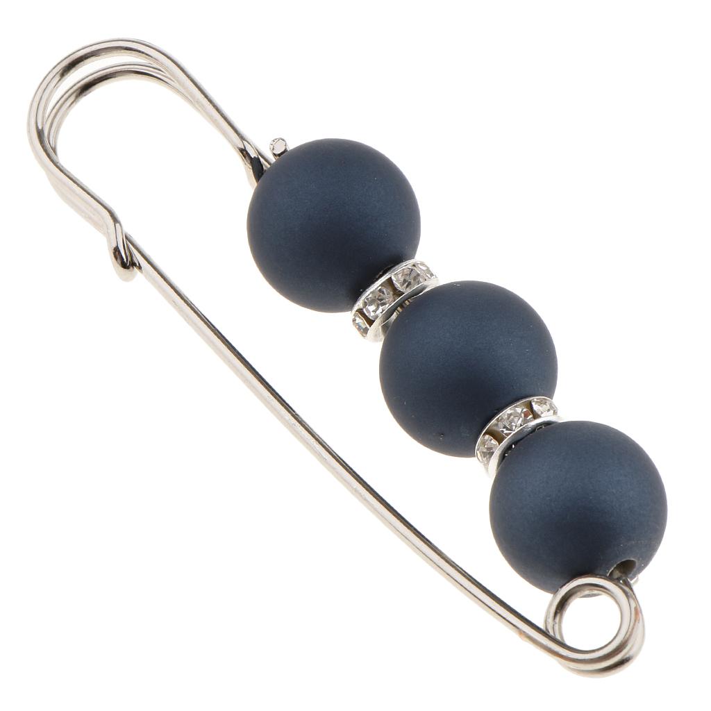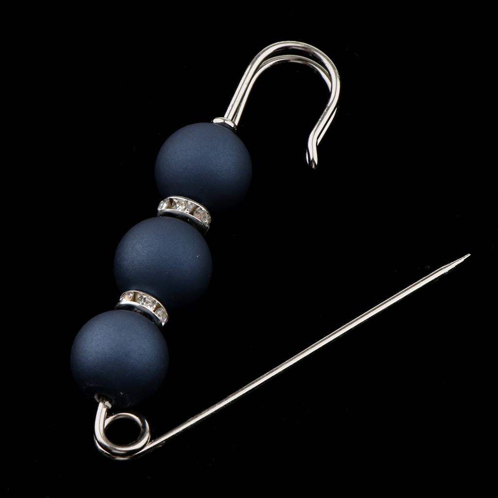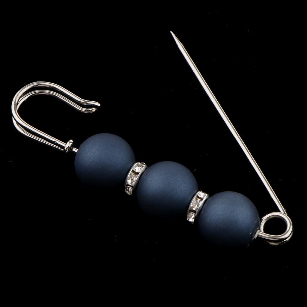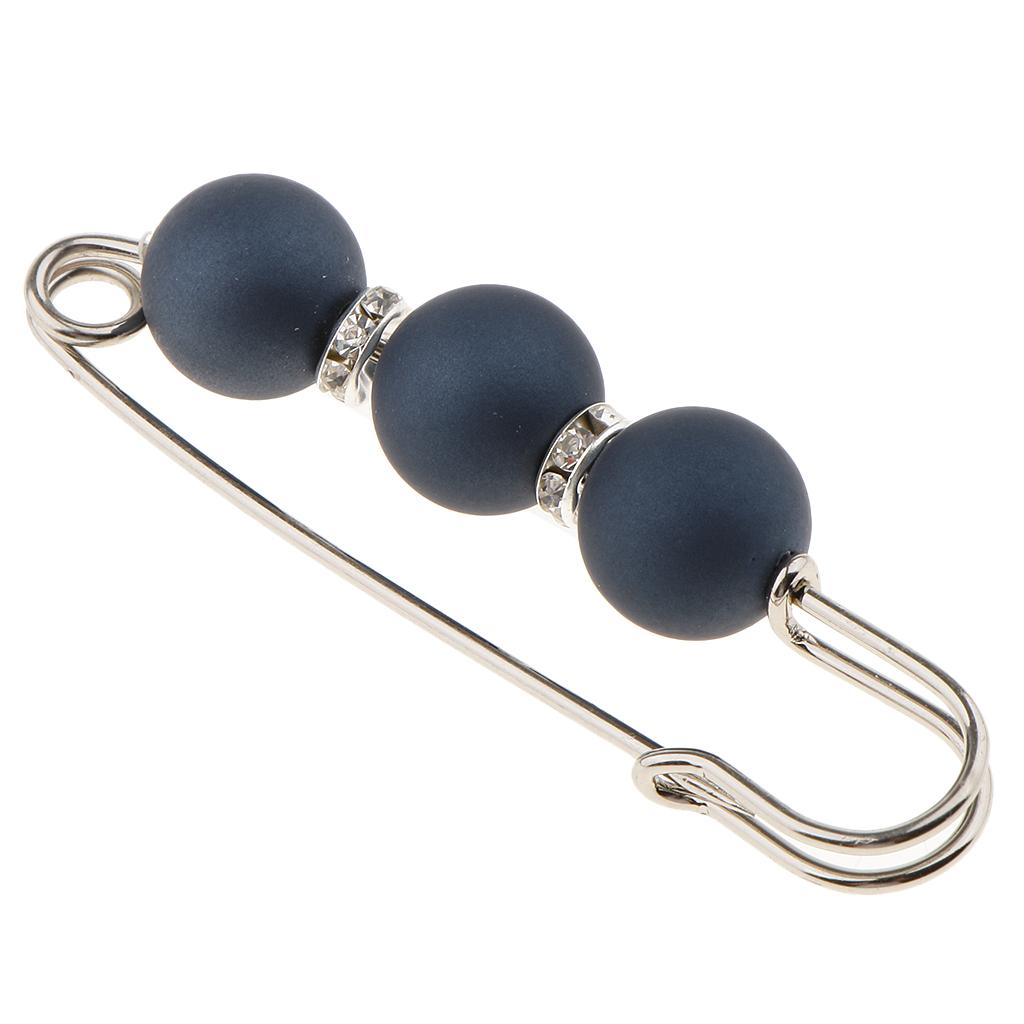 ABS Pearls Rhinestone Spacer Beads Safety Pin Brooch Clip Scarf Hat Blue