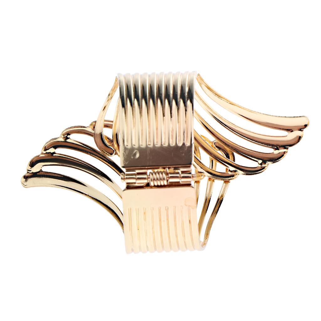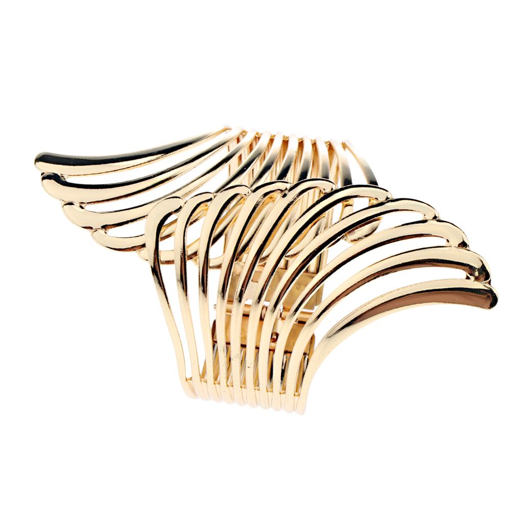 Alloy Metal Feather Bracelet Smooth Hollow Hoop Open Ended Wide Cuff Bangle