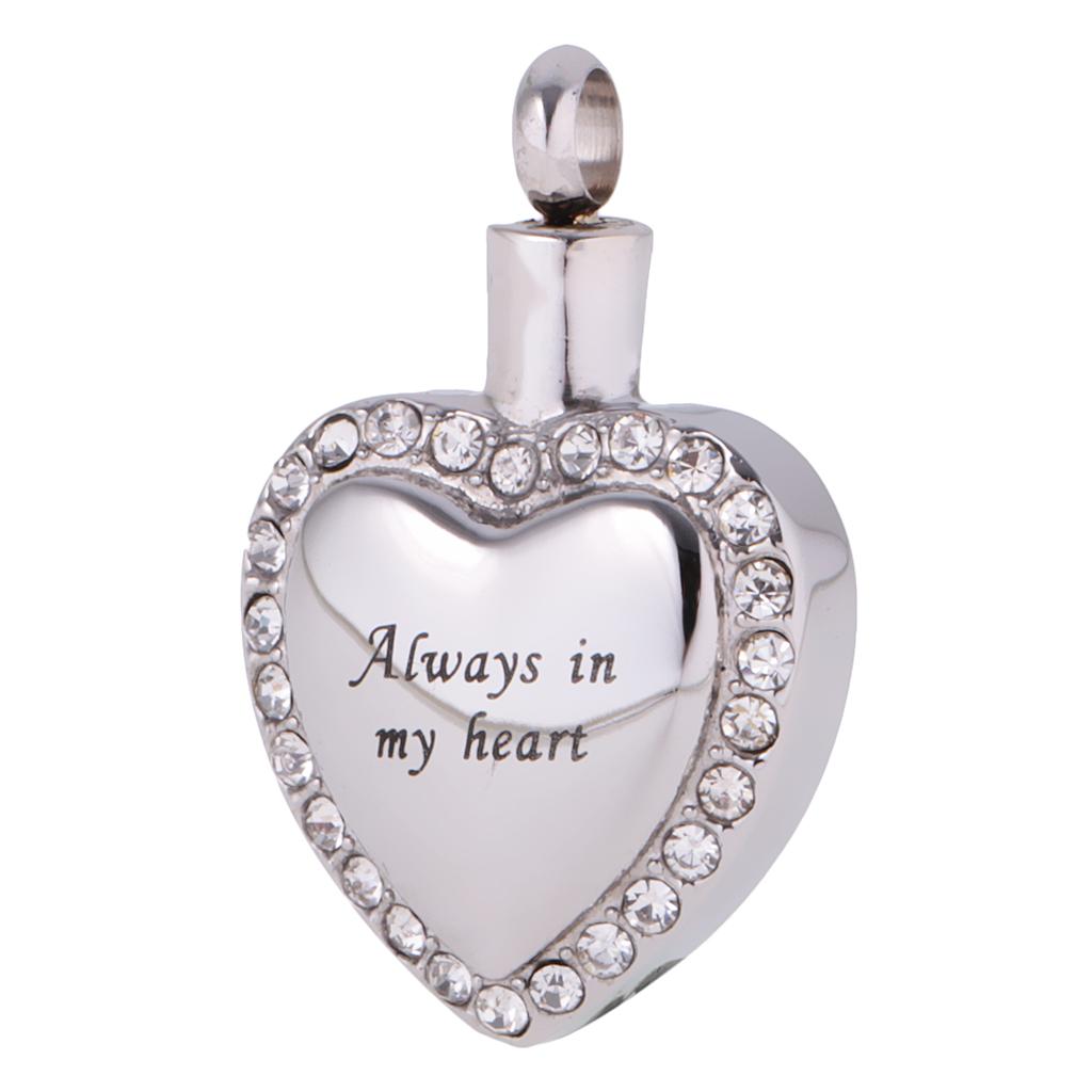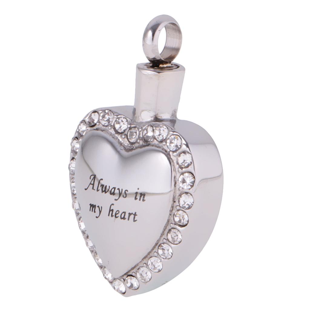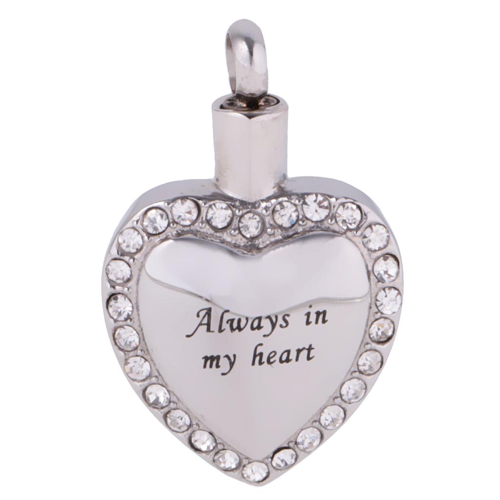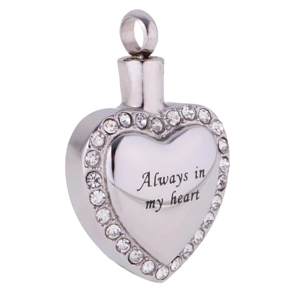 Heart shape design with Always in my heart letters pattern keepsake pendant is best to cherish your most love's Memory.