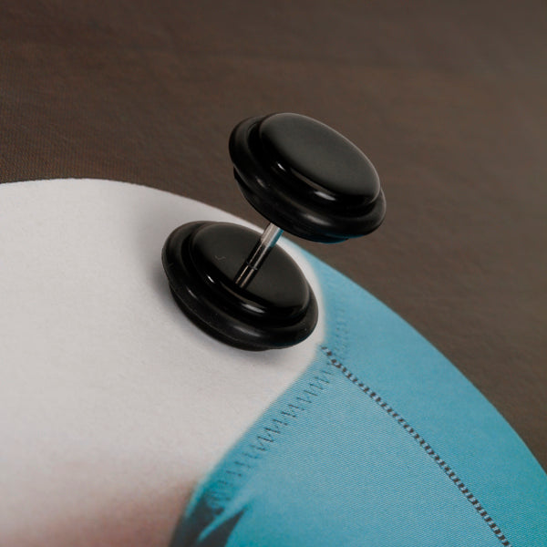 This imaginative fake ear plug will give you the look of ear taper / expander without the pain.