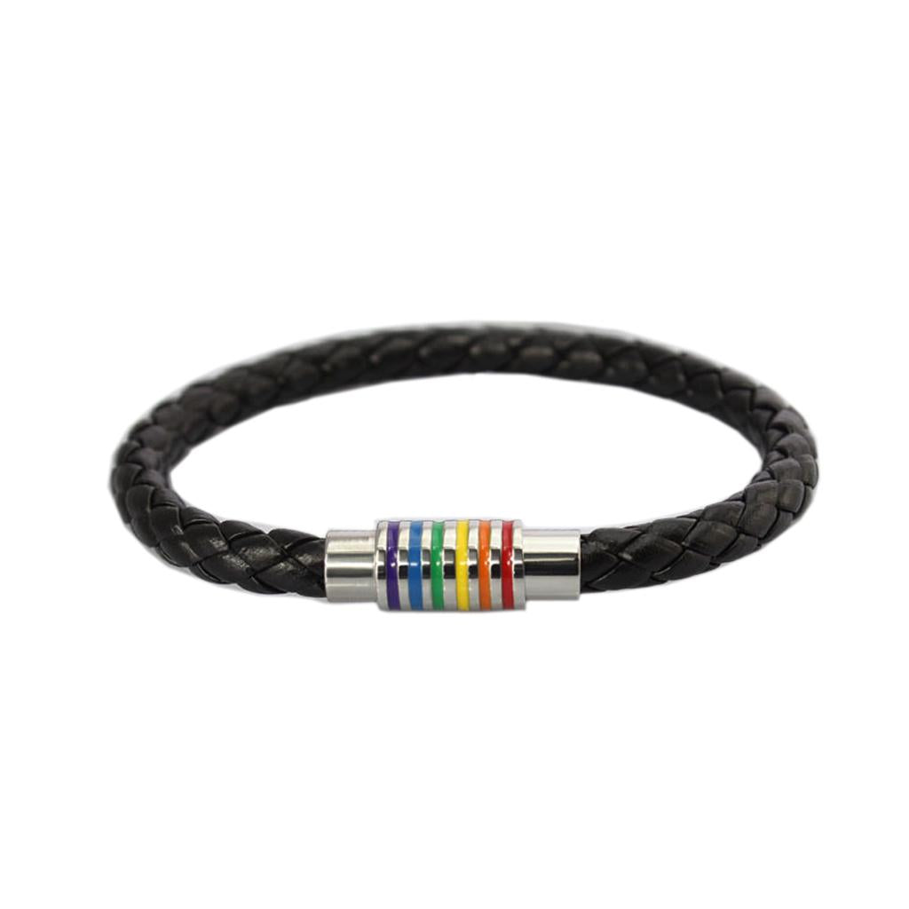 Artificial Leather Braided Rainbow Magnetic Clasp Handband Multi-color