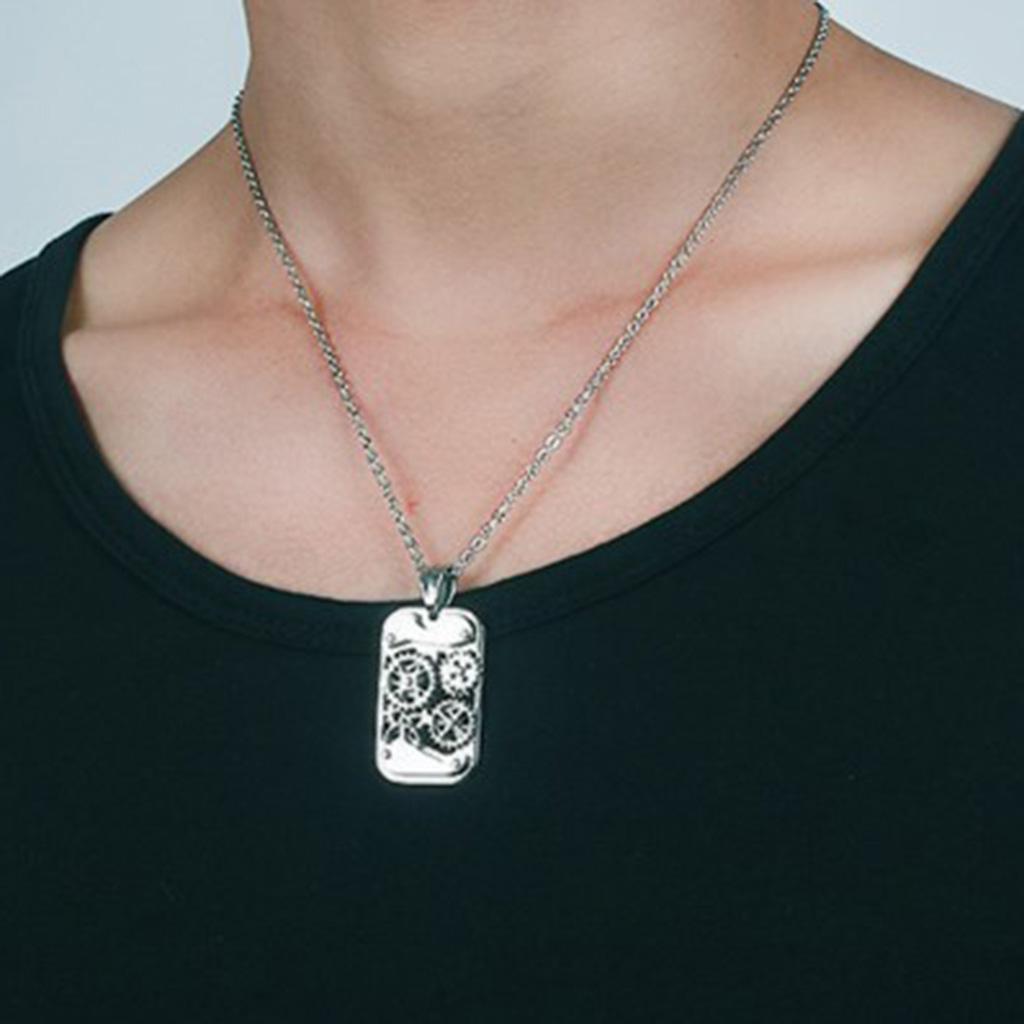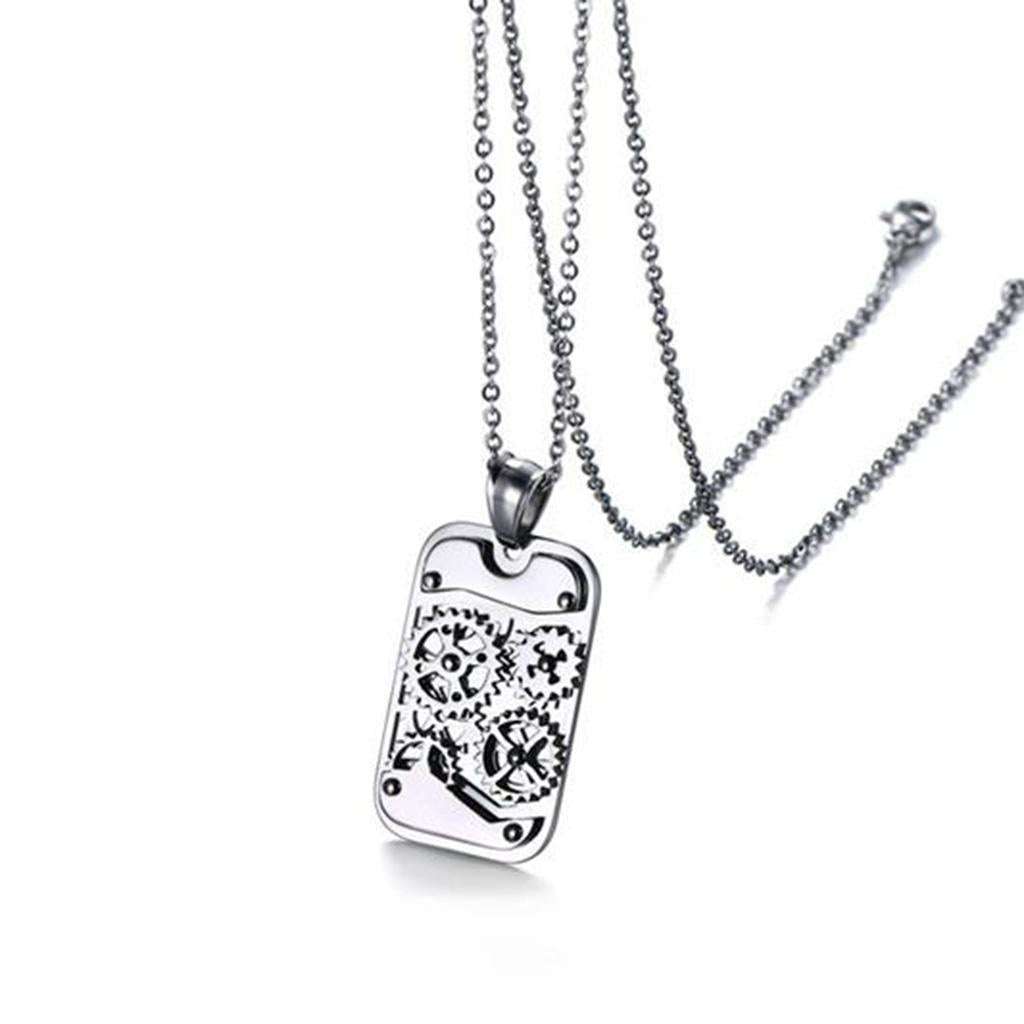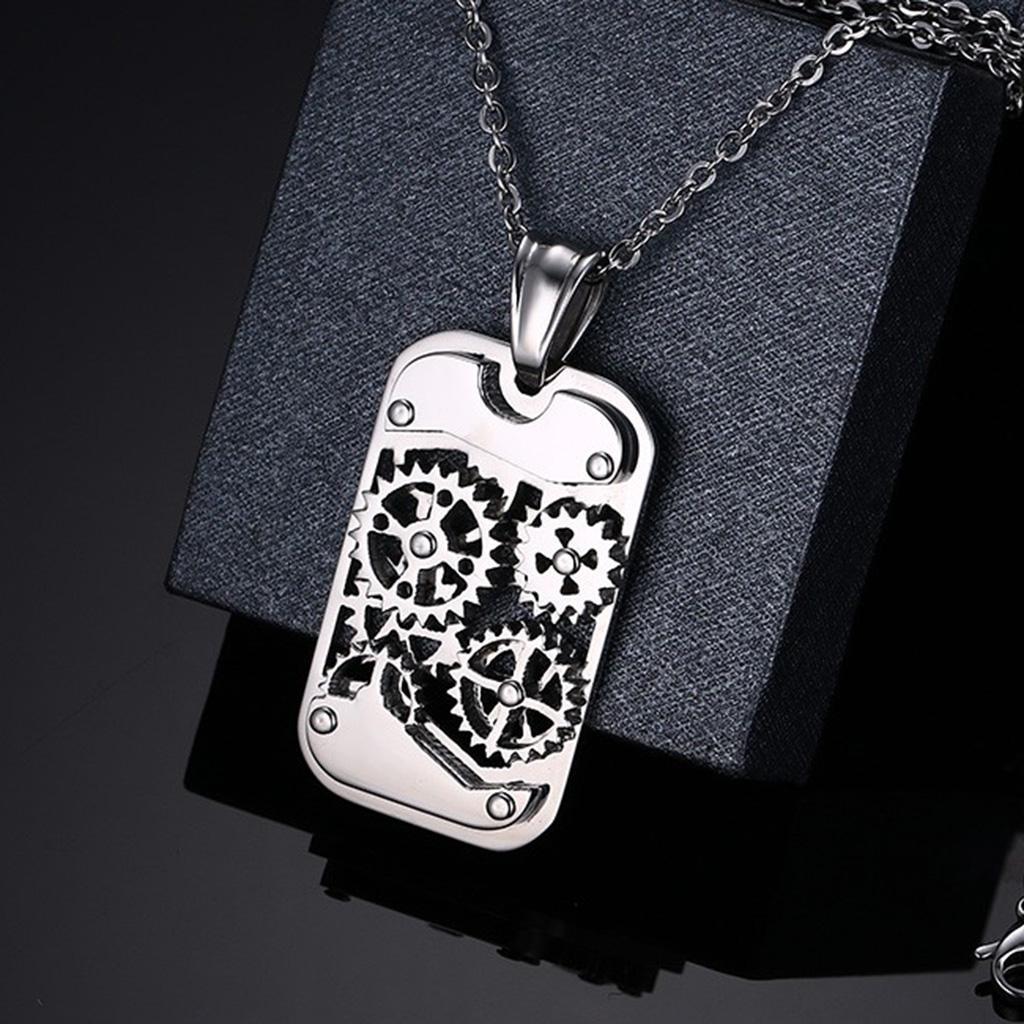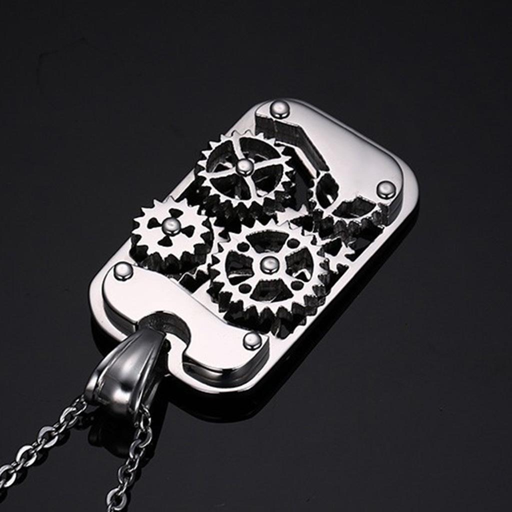 Biker Punk Stainless Steel Mens Chain Necklace Gear Dog Tag Mechanical Jewelry Necklace