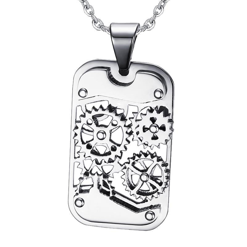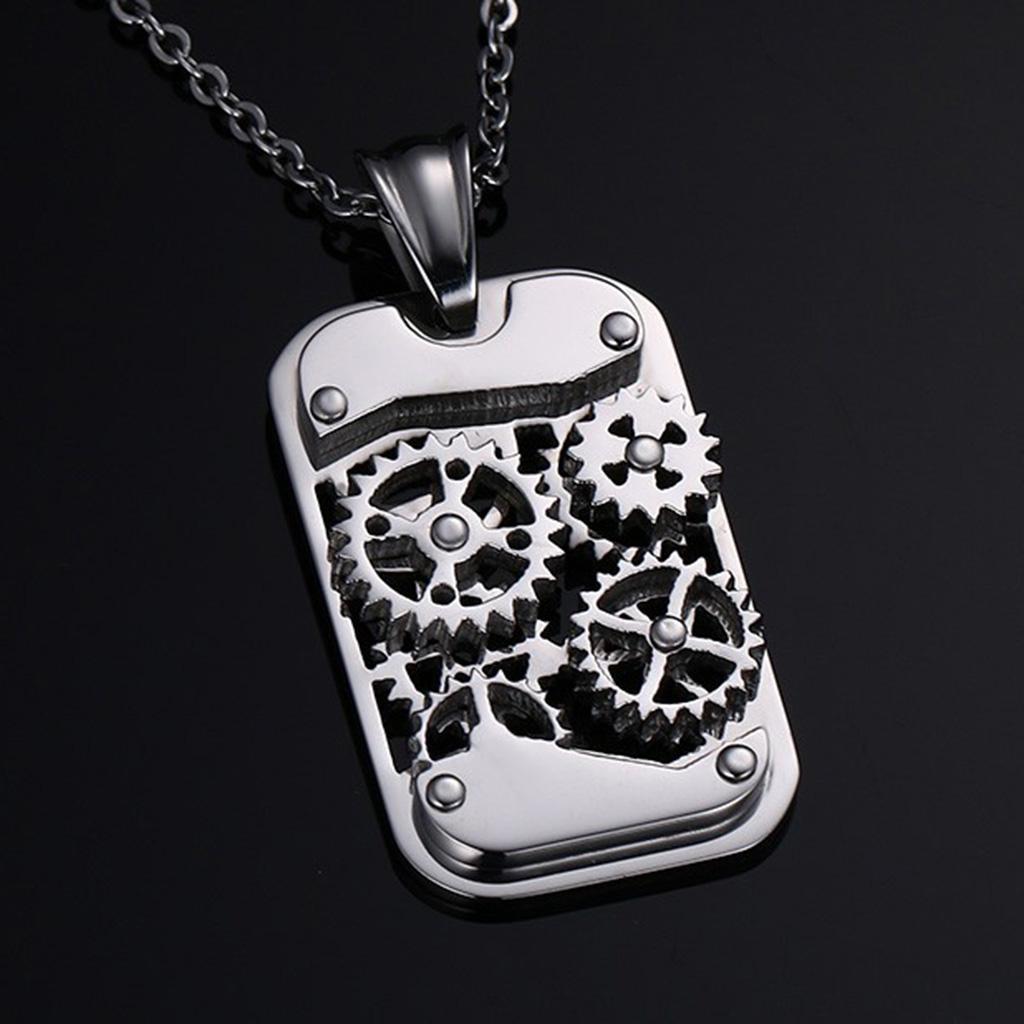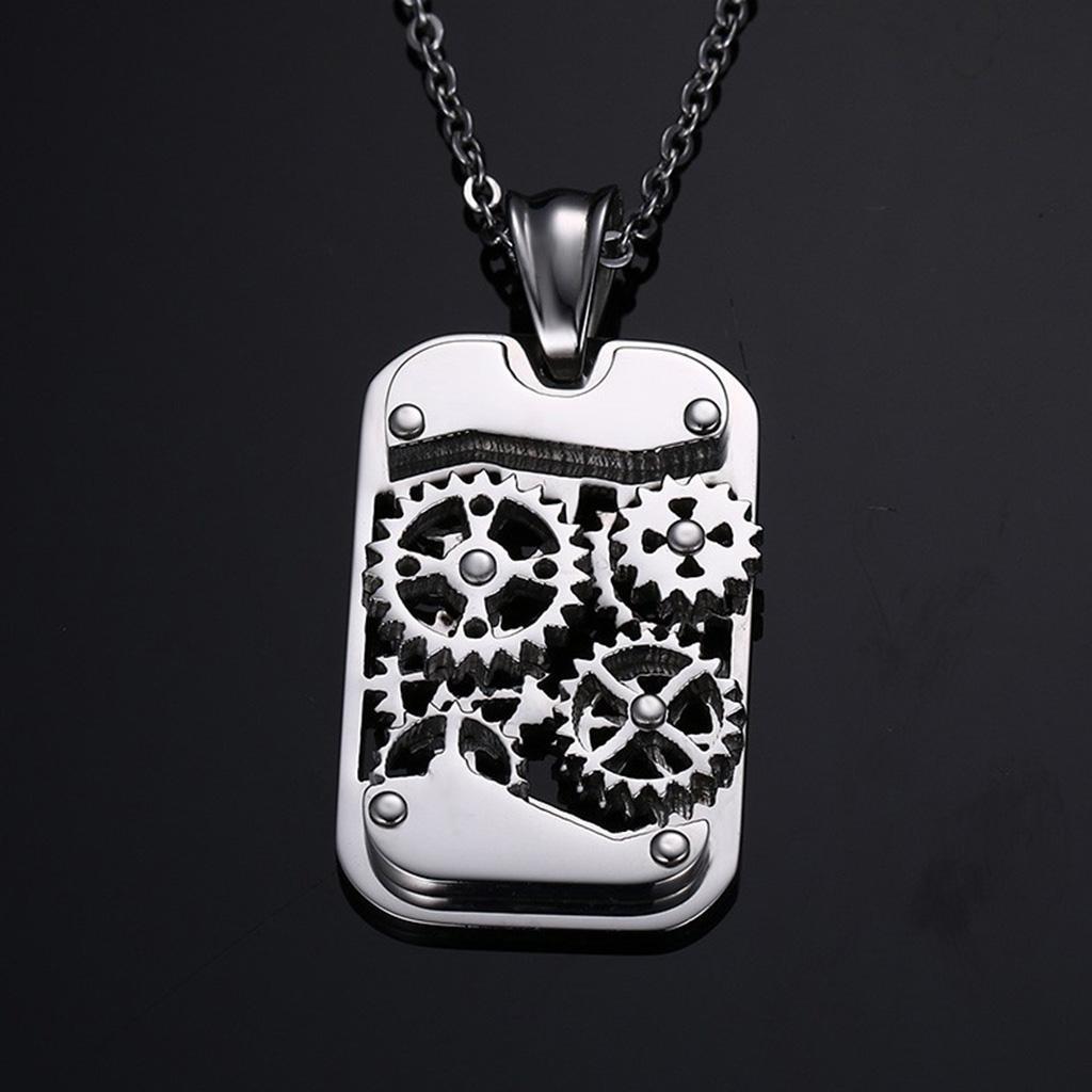 Biker stainless steel steampunk gear dog tag mechanical necklaces punk rock jewelry.