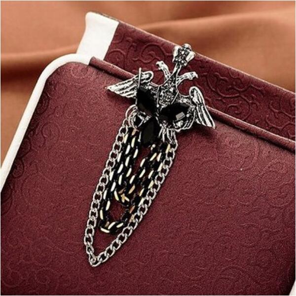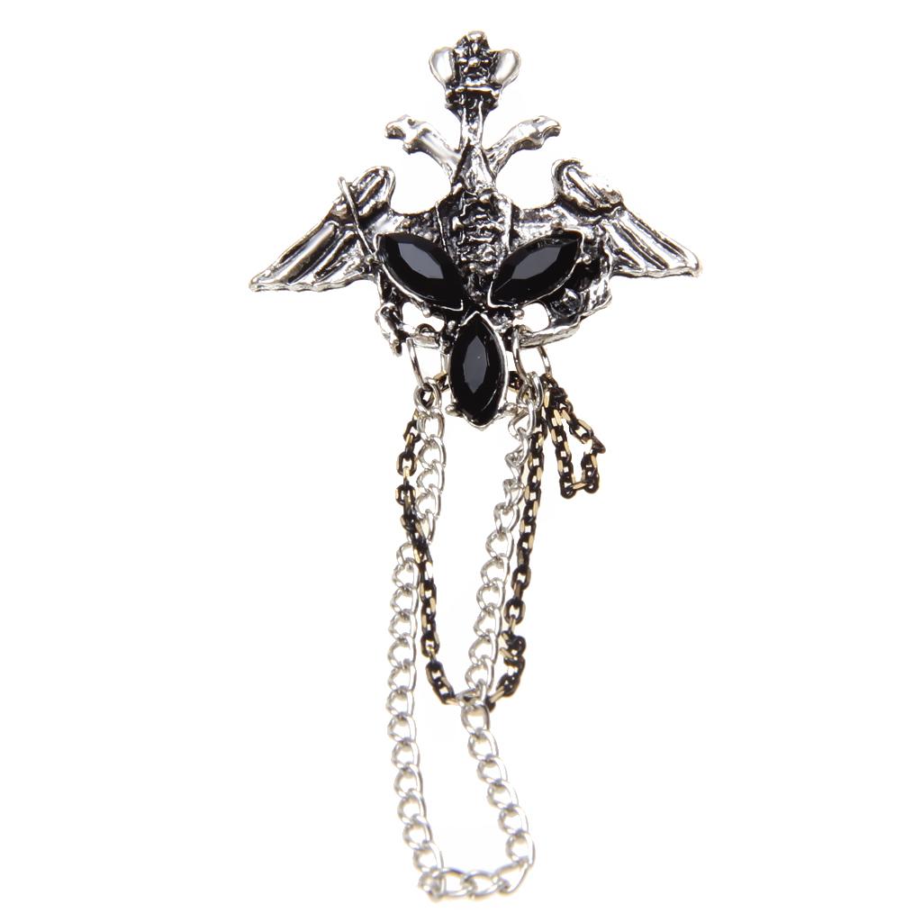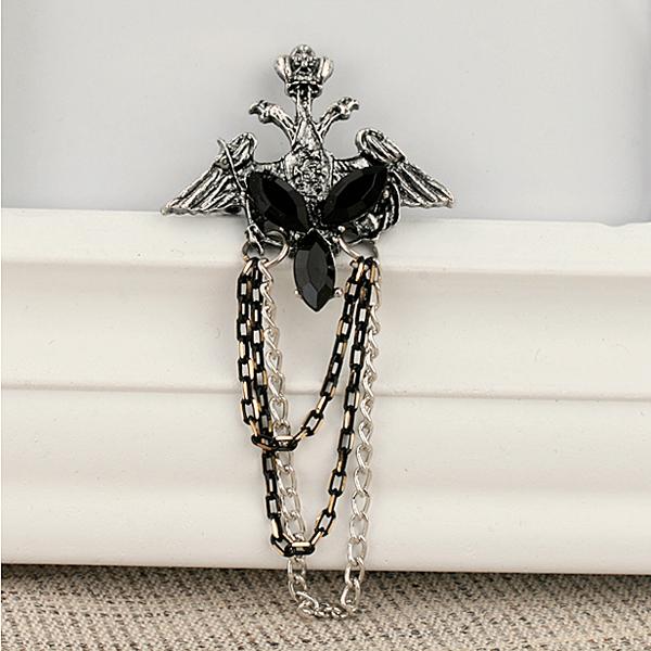 Black Gothic Punk Acrylic Crown Angel Wing Rhinestone Broach Chain Tassel Bouquet Brooch Breastpin Pin