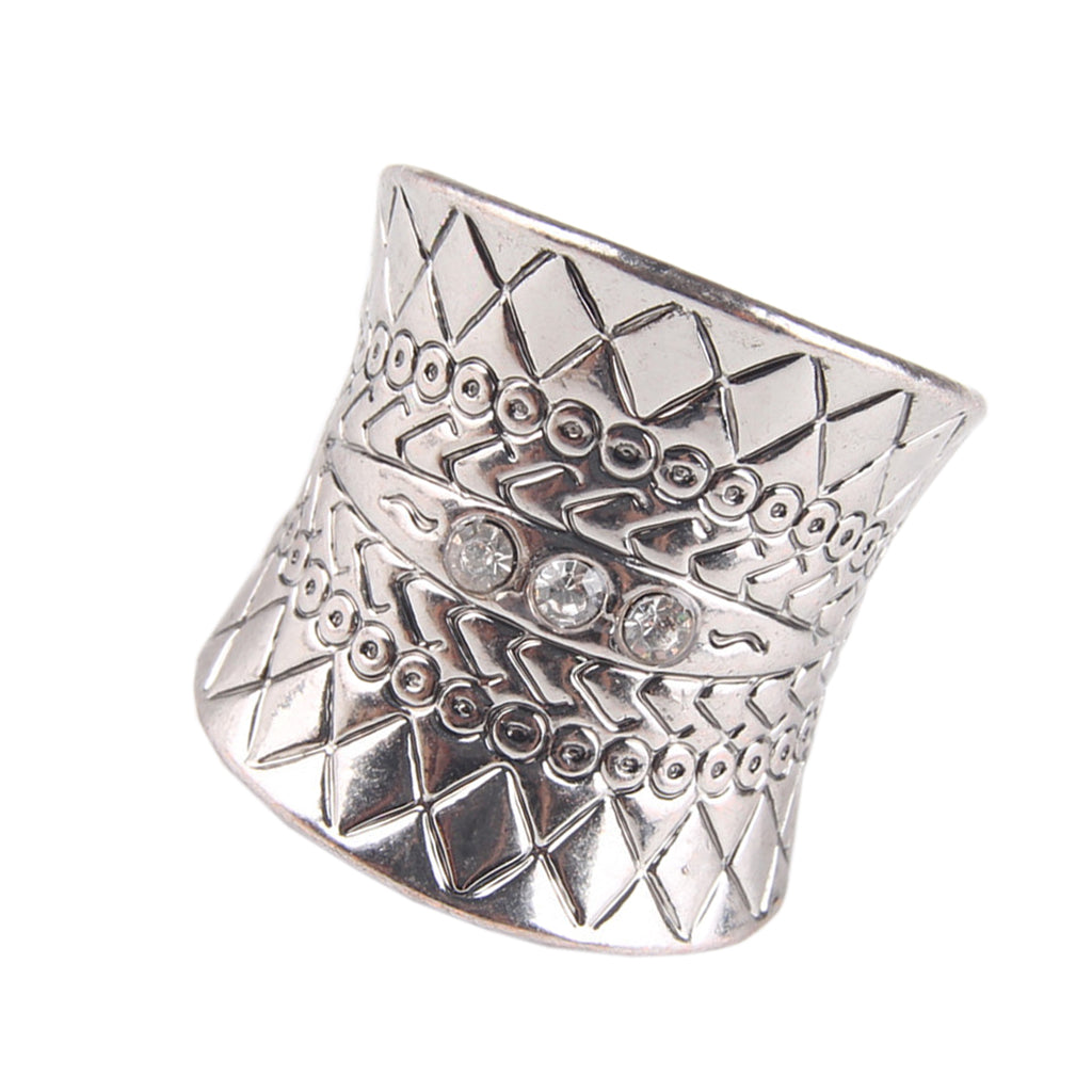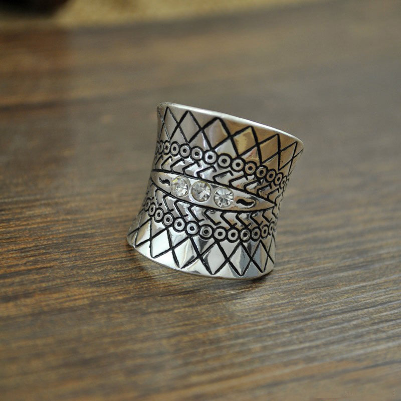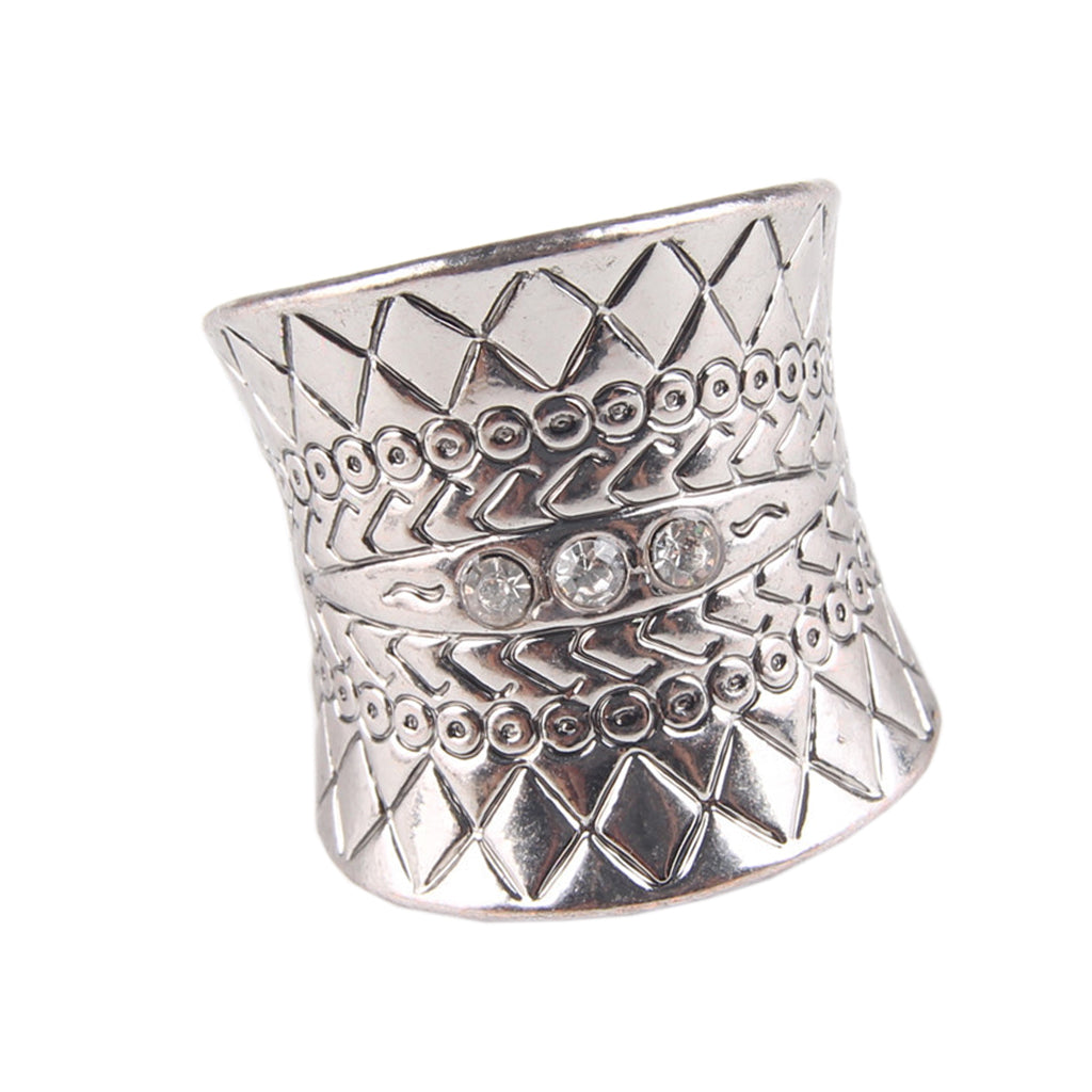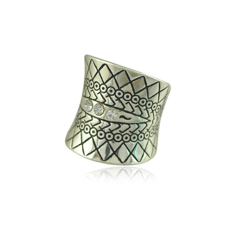 Bohemia Ethnic Vintage Carved Flower Diamante Crystal Rhinestone Charm Ring