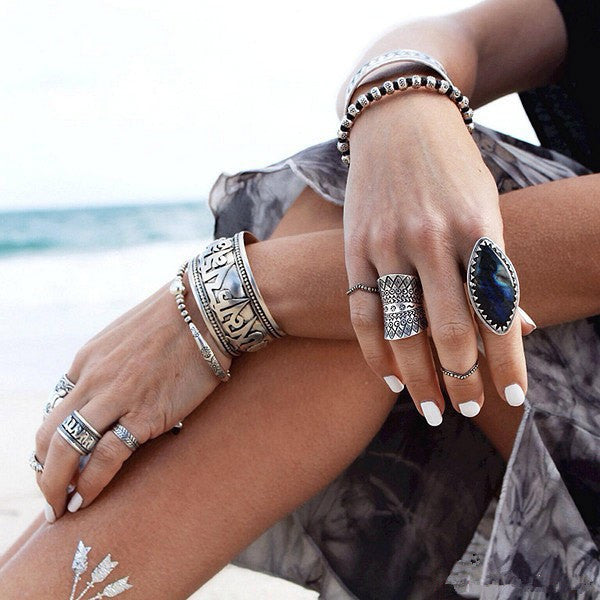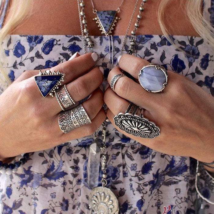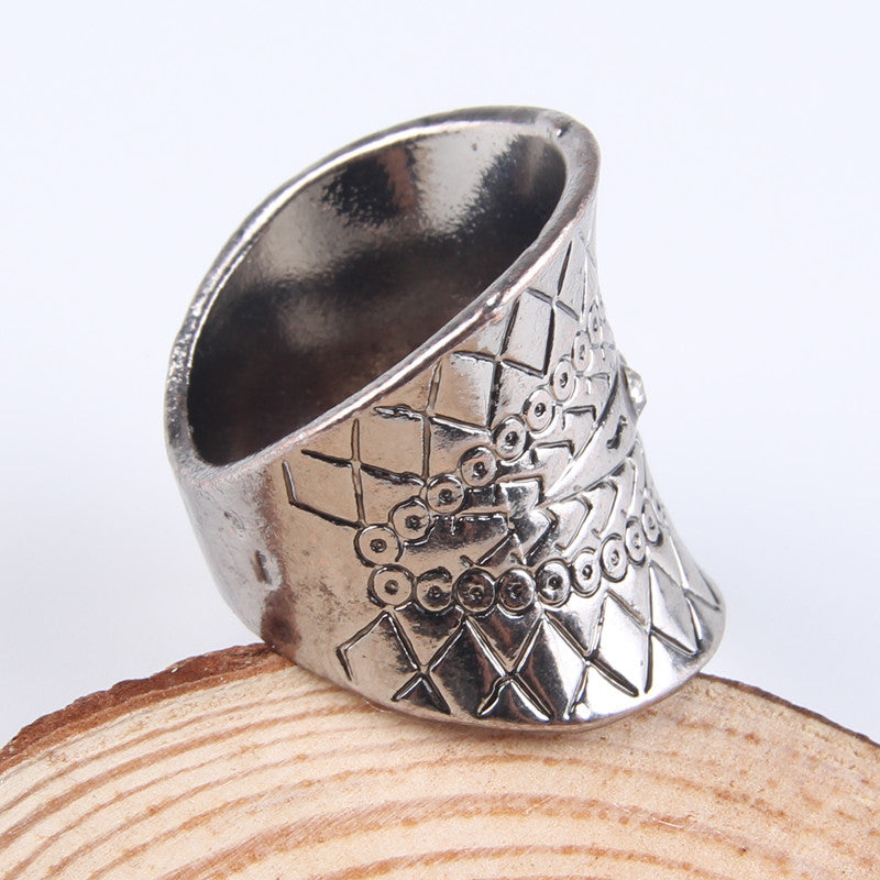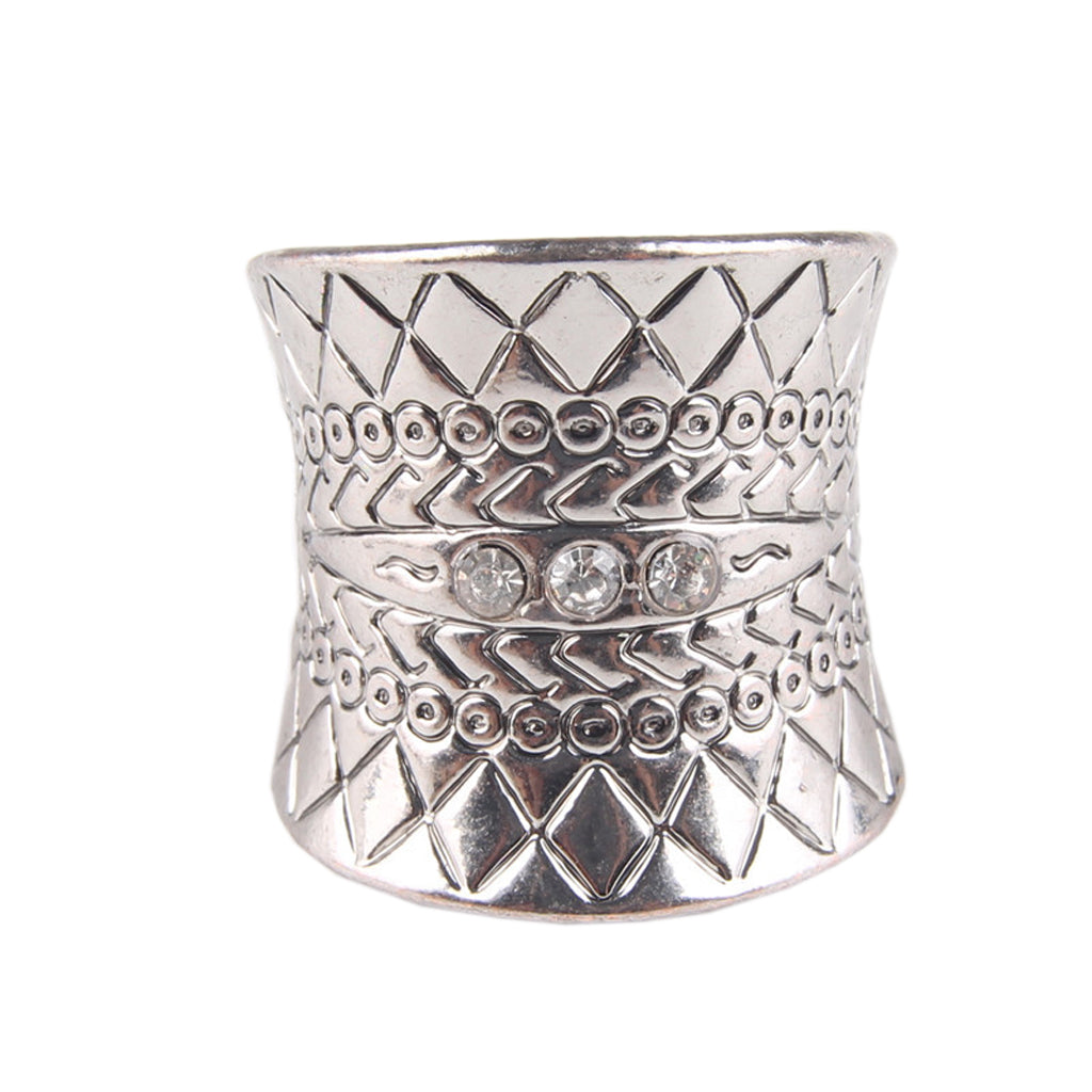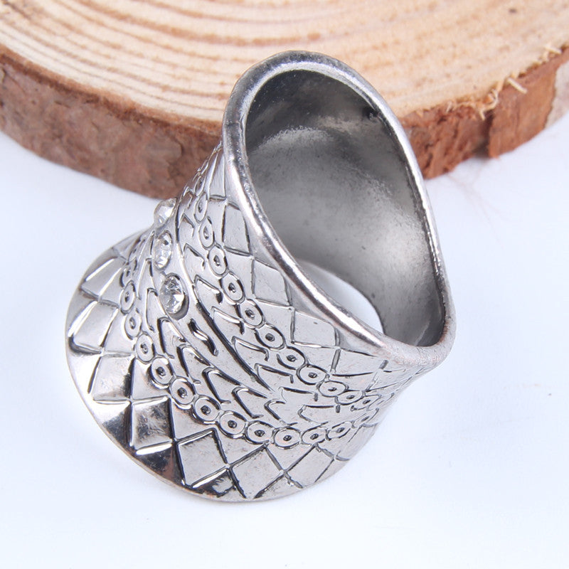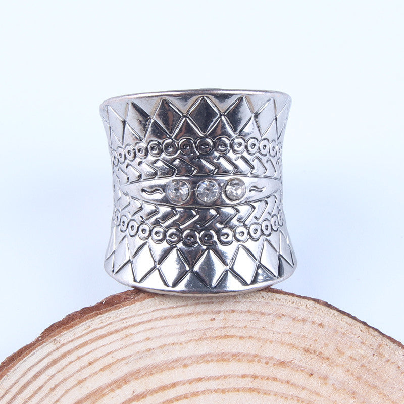 Bohemia Ethnic Vintage Carved Flower Diamante Crystal Rhinestone Charm Ring