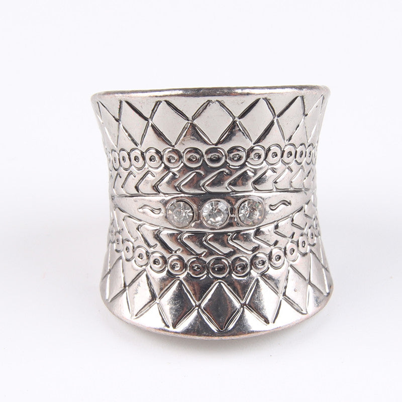 • Bohemia ethnic vintage style carved flower diamante crystal rhinestone charm ring