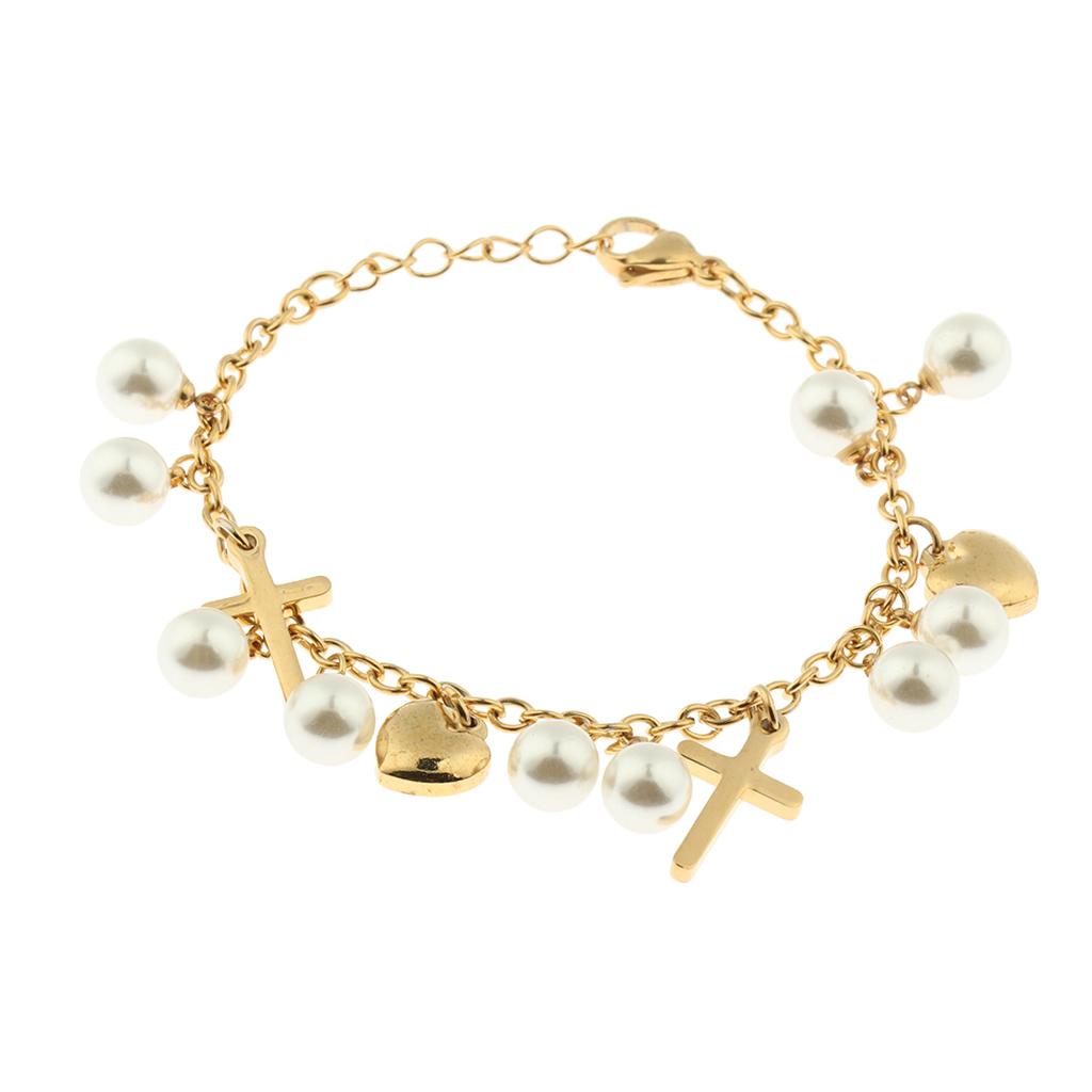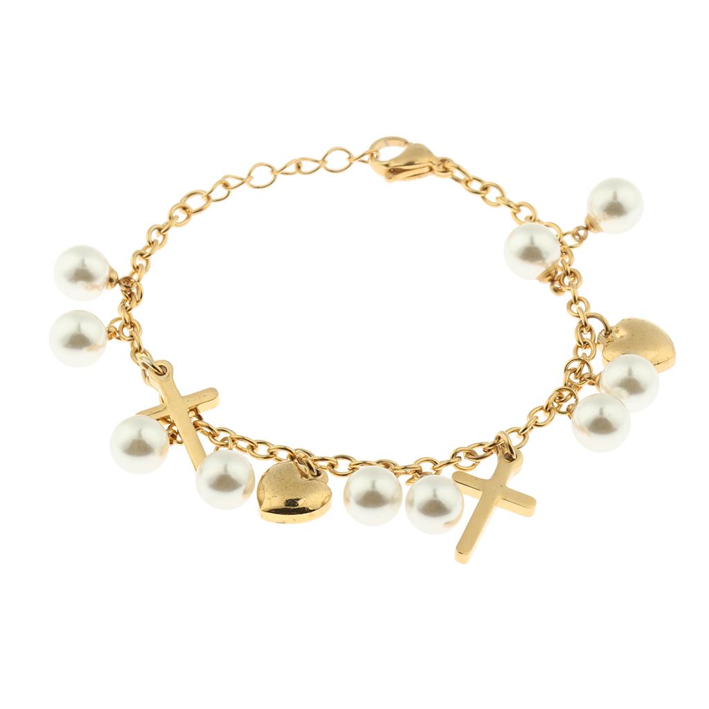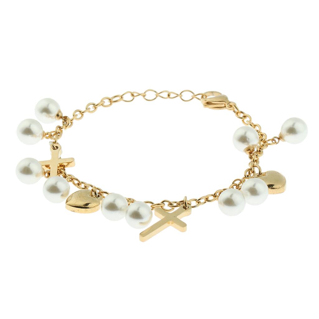 Bohemian Style Pearl Beads Bracelet Ethnic Boho Jewelry Cuff Chain - Golden White Color