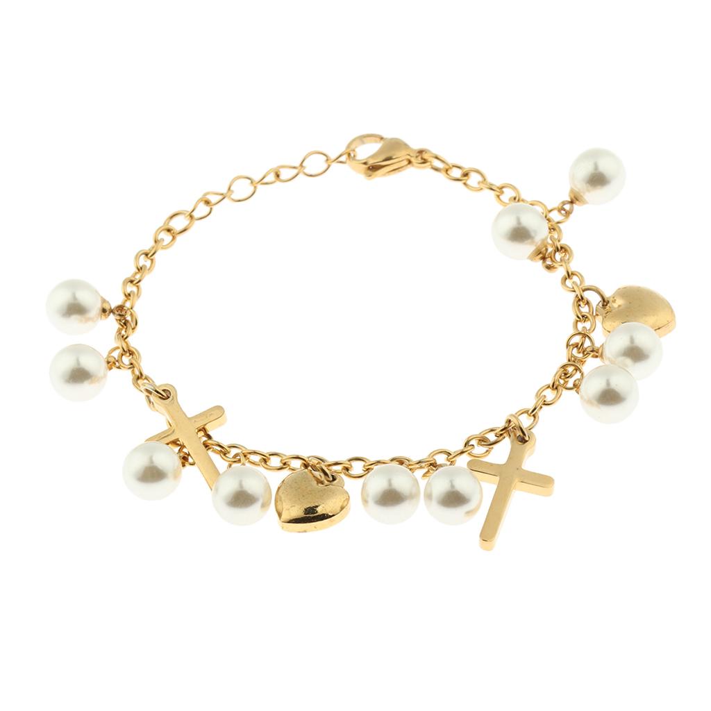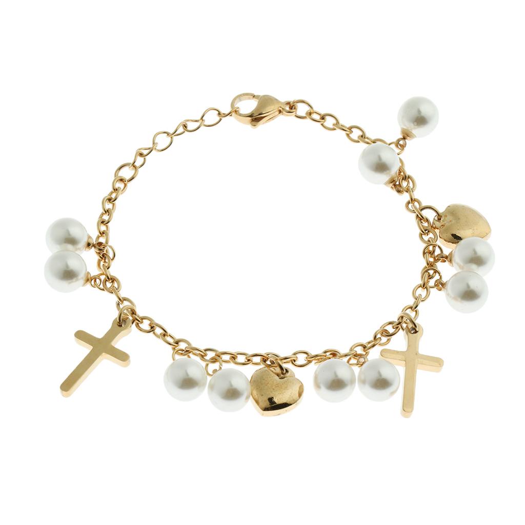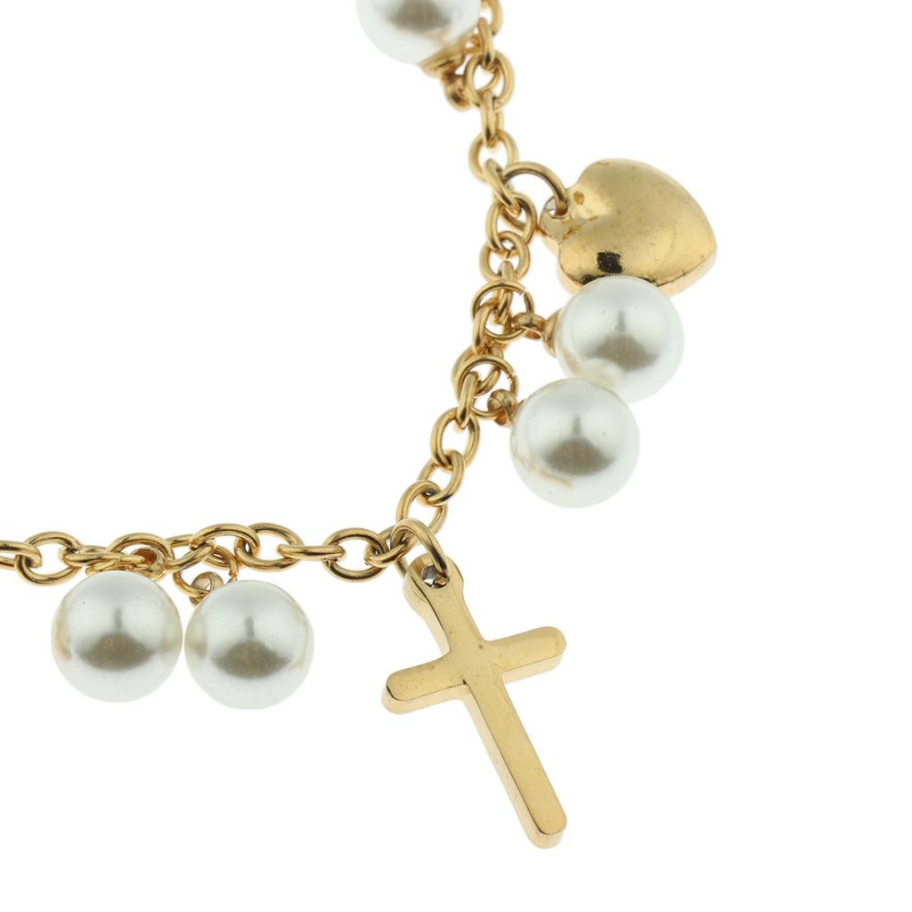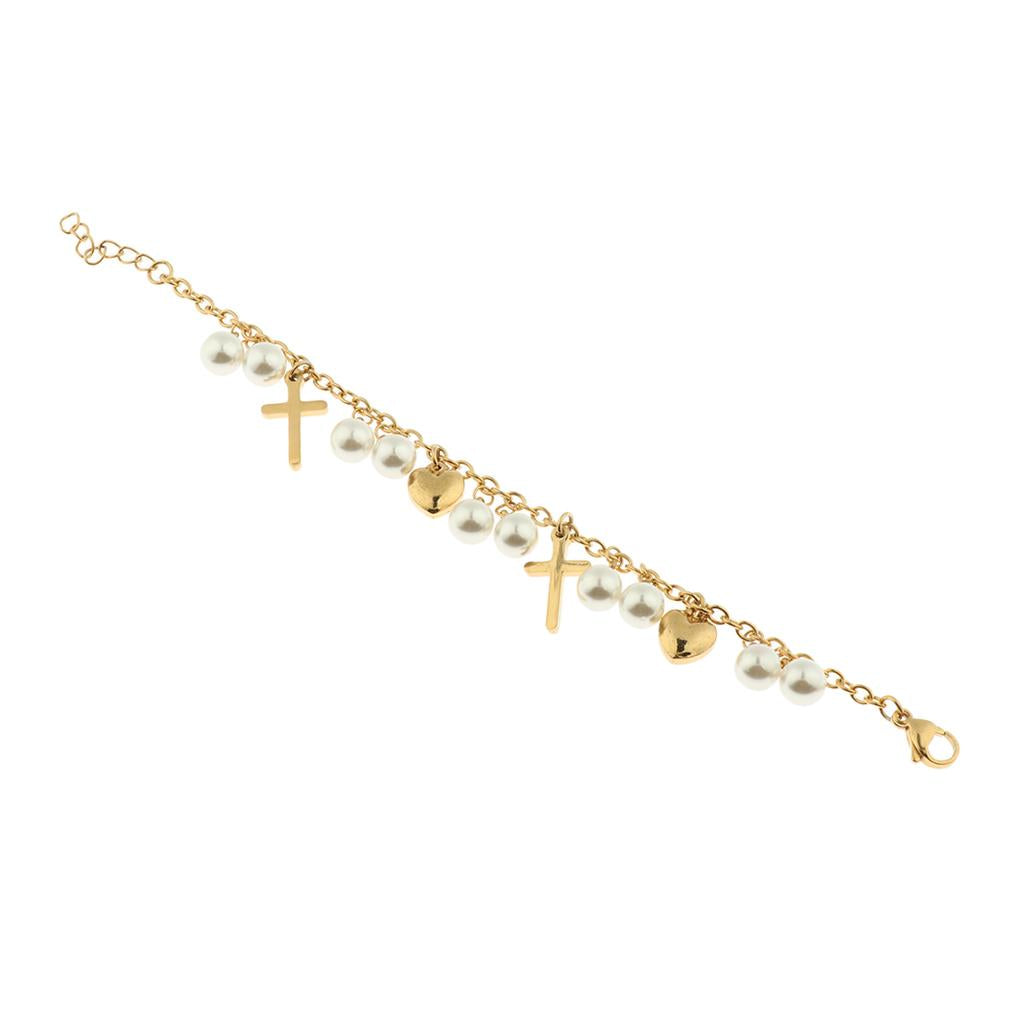 Bohemian Style Pearl Beads Bracelet Ethnic Boho Jewelry Cuff Chain - Golden White Color