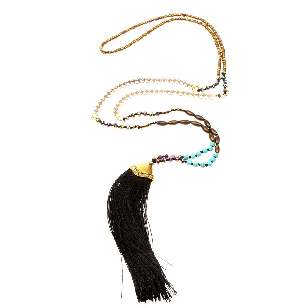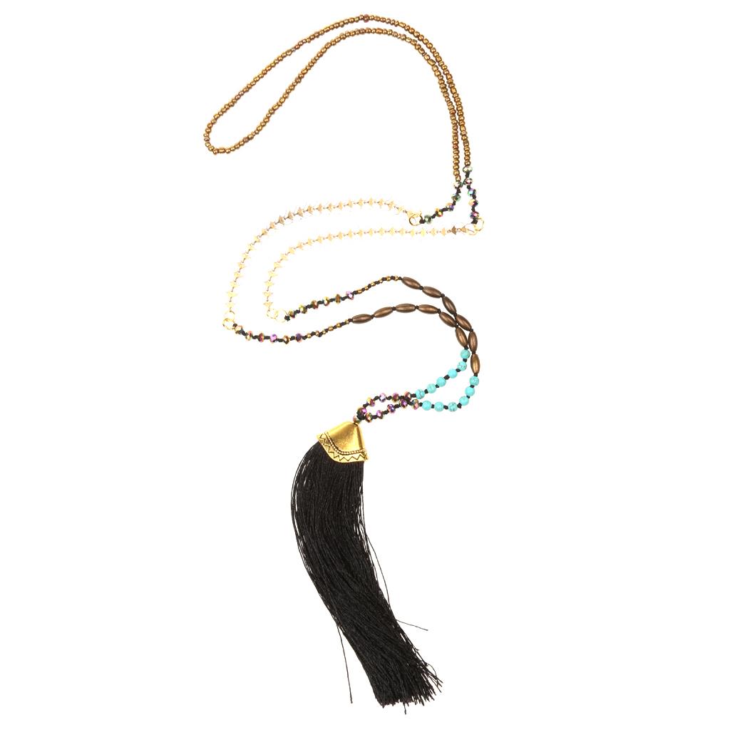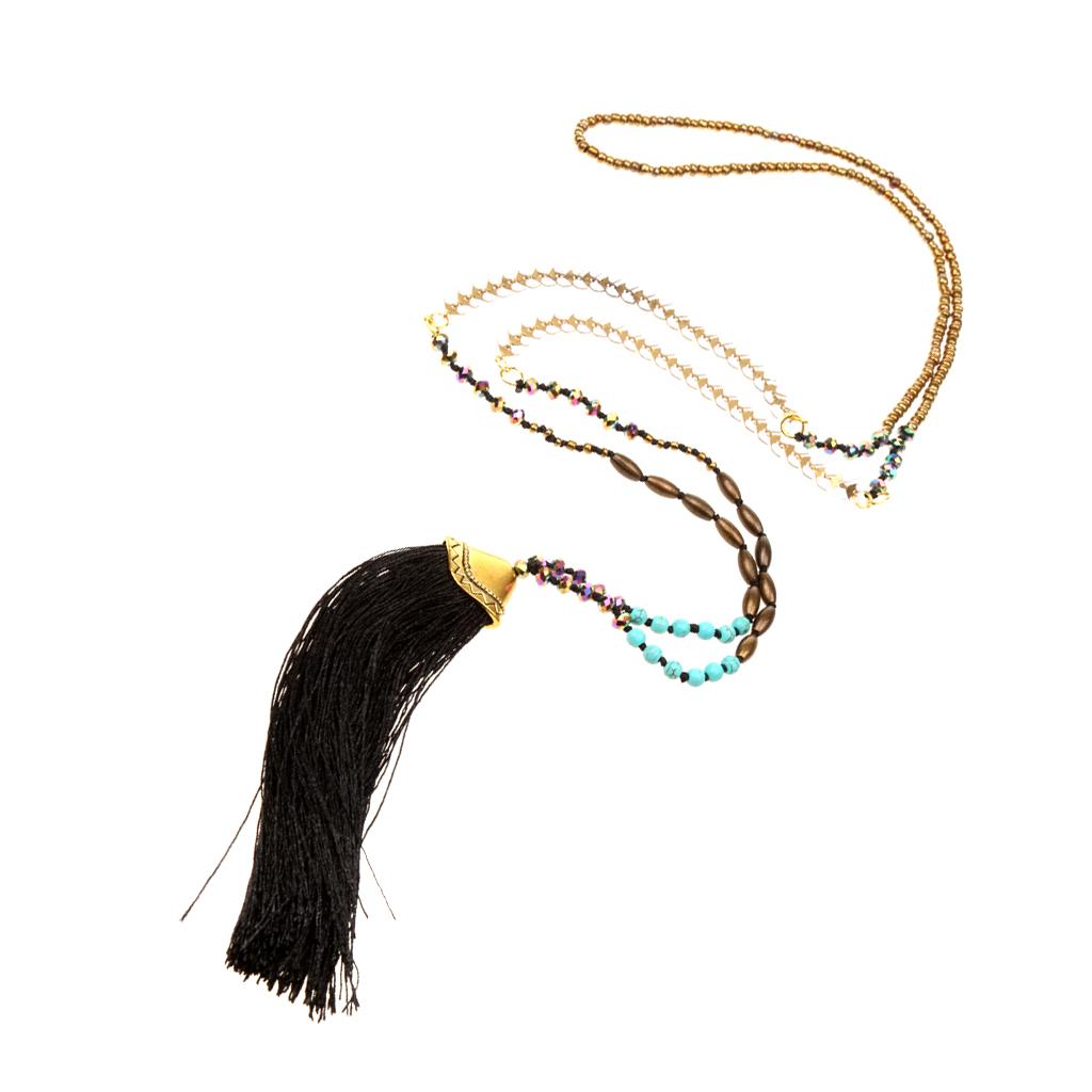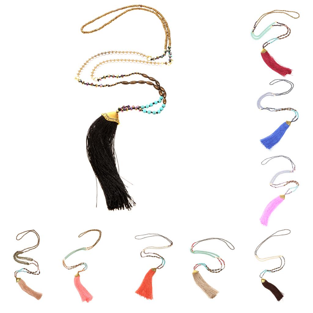 • Bohemia and ethnic style long beads strand necklace with tassel