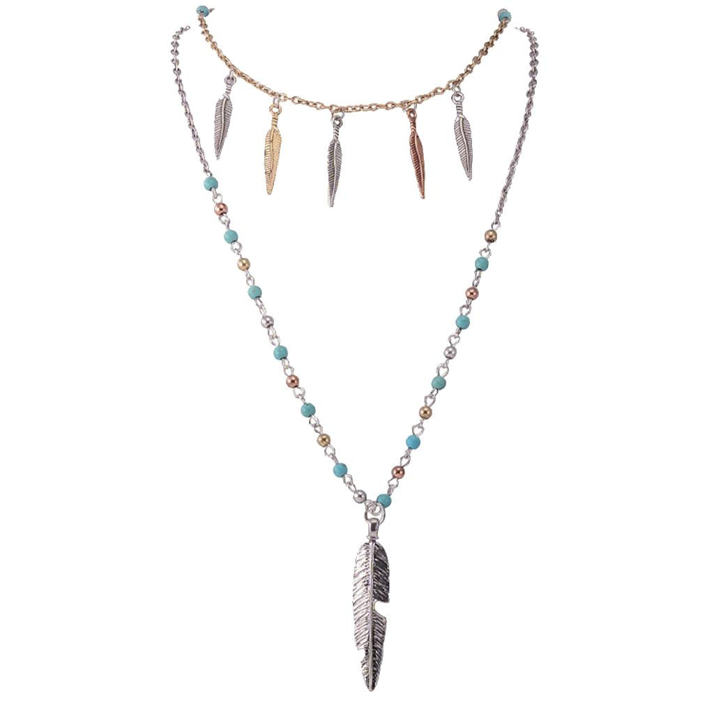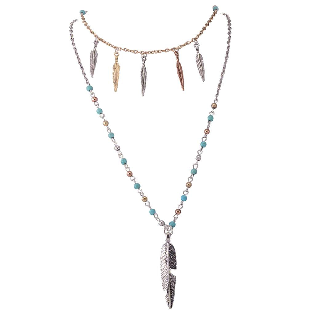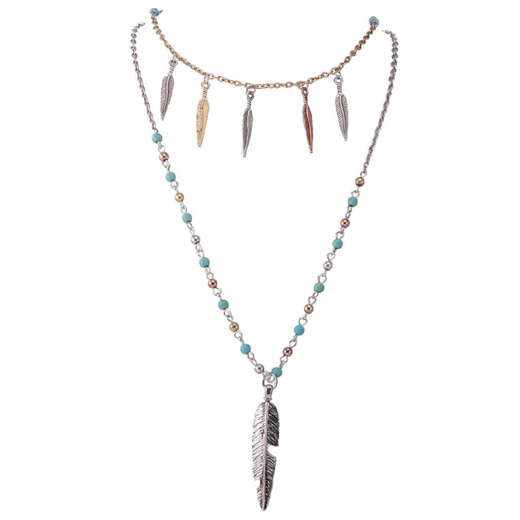 Boho Style Jewelry Retro Silver Multilayer Party Long Chain Pendant Necklace