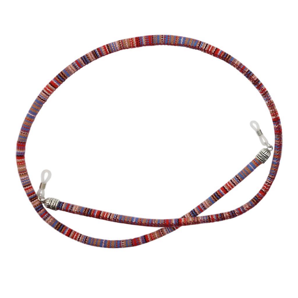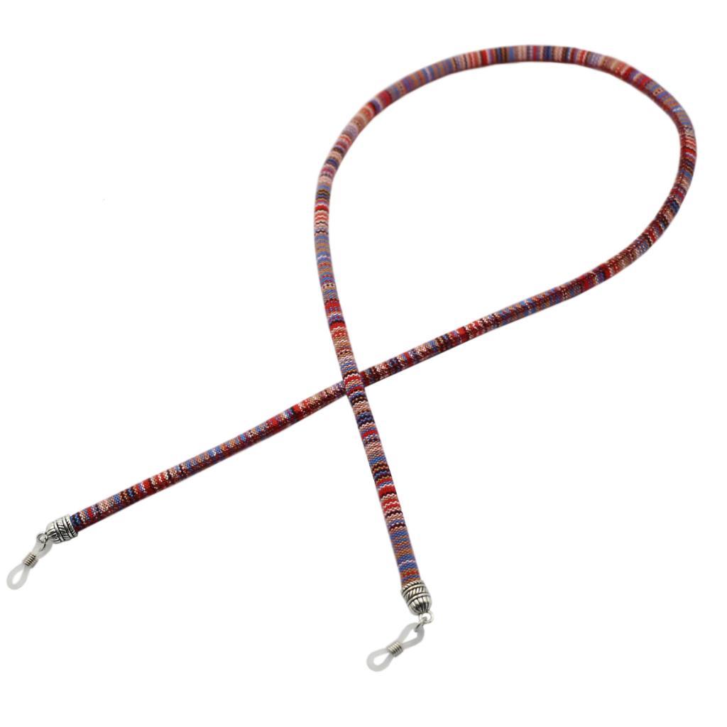 Braid ethnic style cutton eyeglasses chain with silver carved cap end