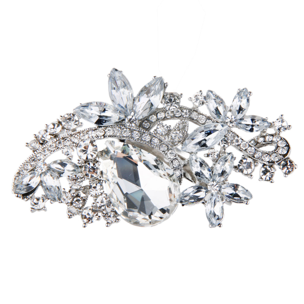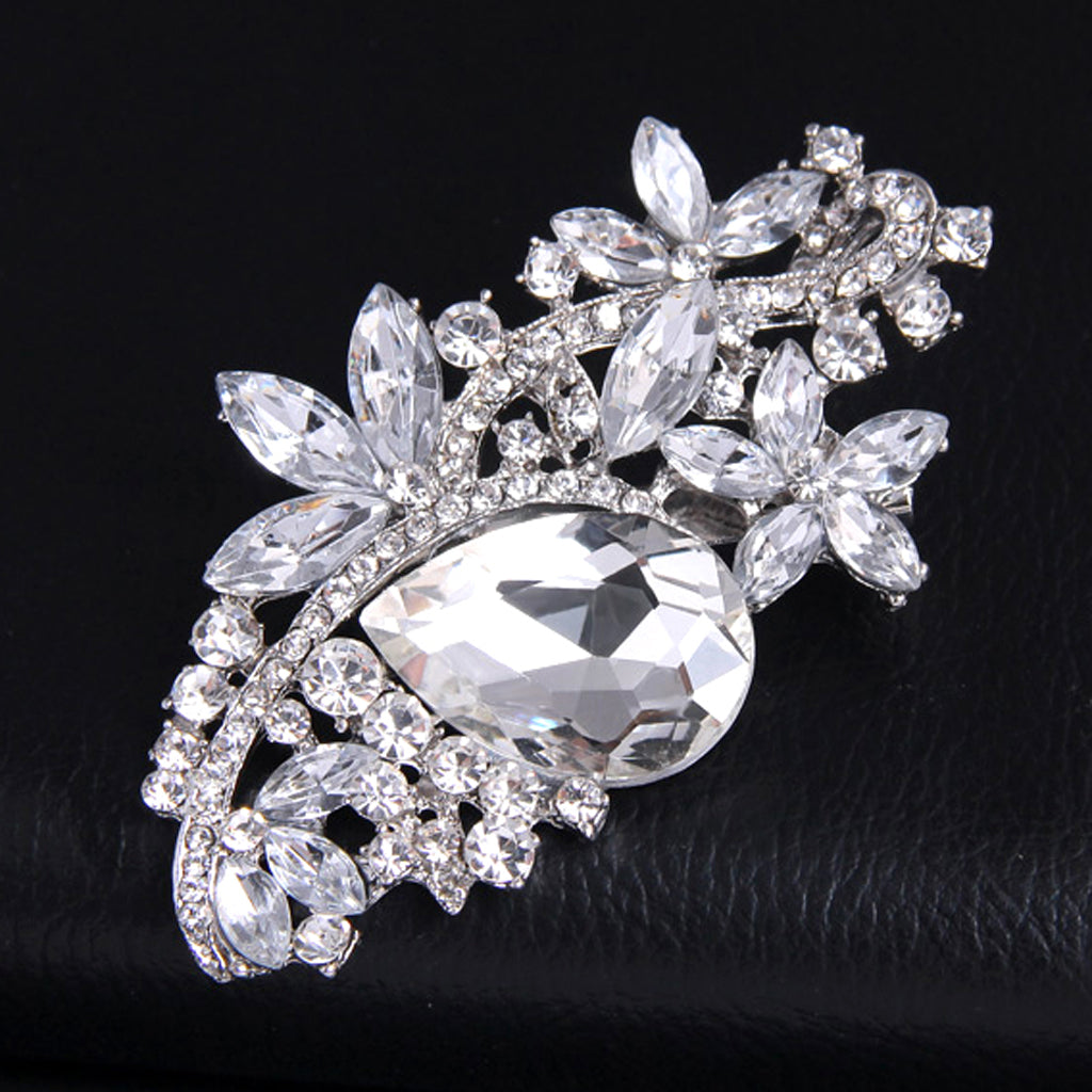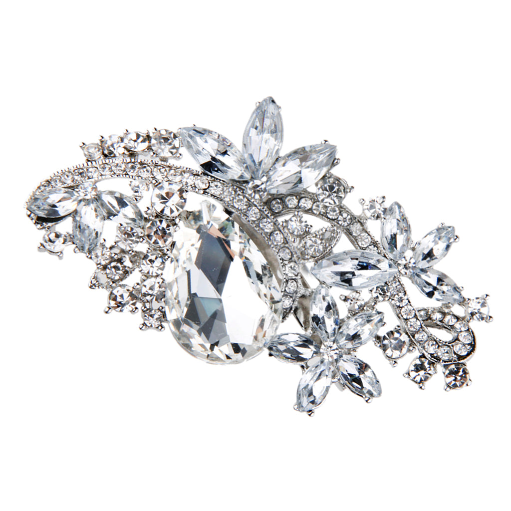 Bridal Womens Rhinestone Flower Brooch Pin 9 x 6cm Clear