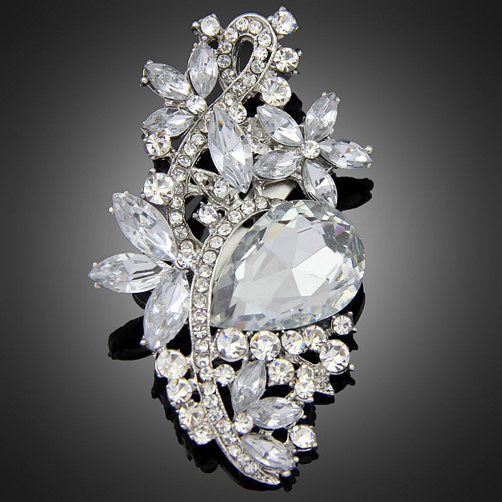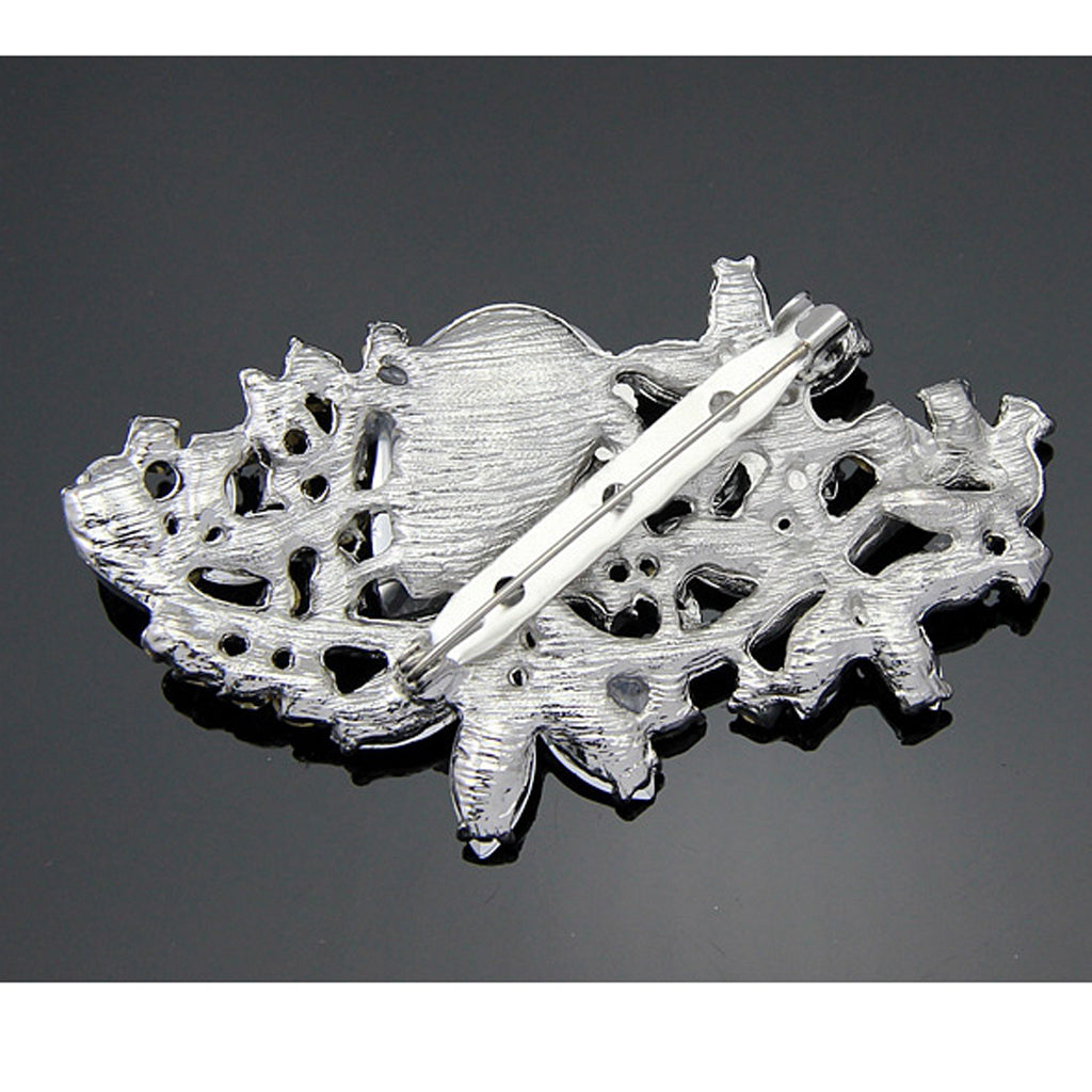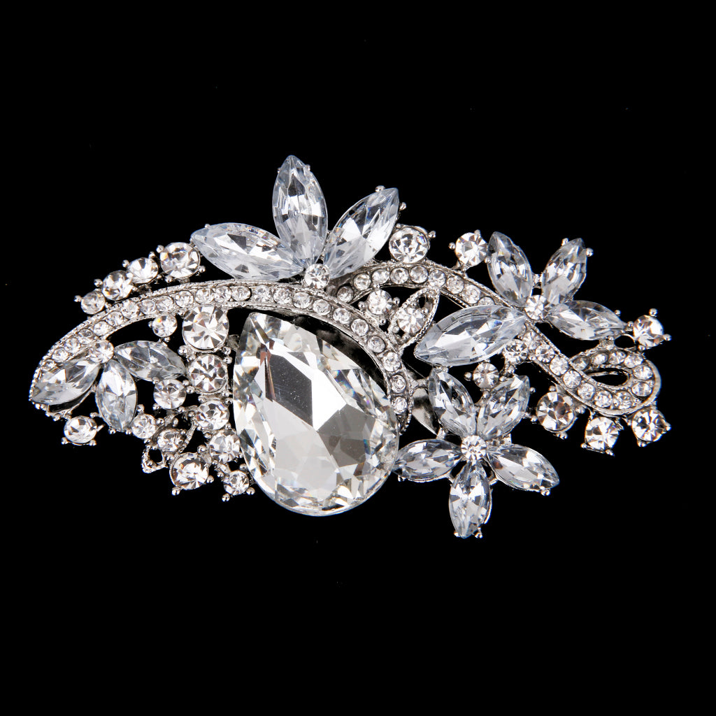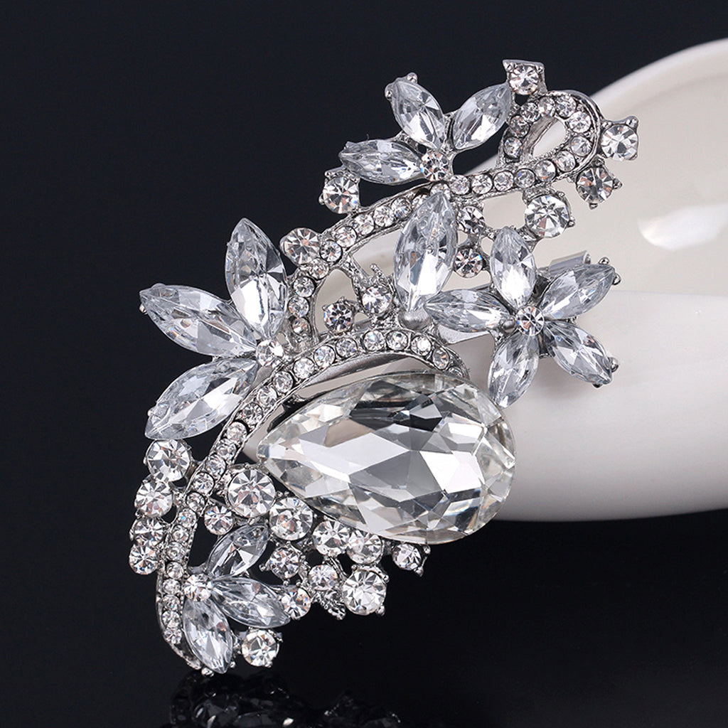 Bridal Womens Rhinestone Flower Brooch Pin 9 x 6cm Clear