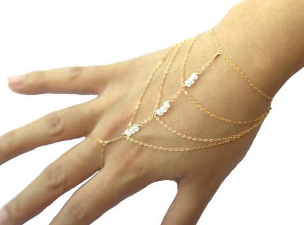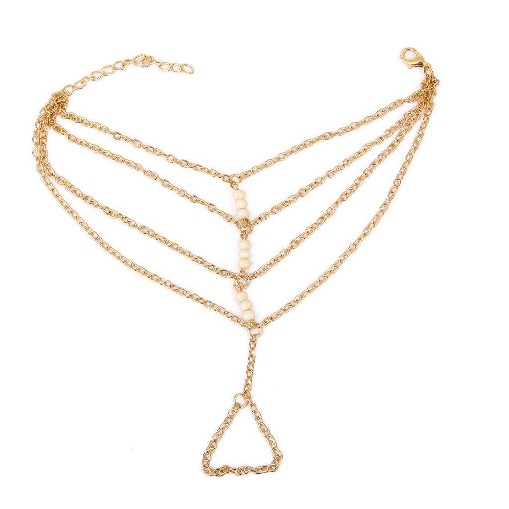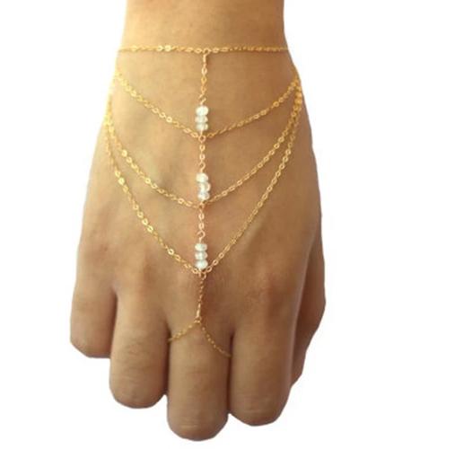 Celebrity Tassel Chain Acrylic Beads Bracelet Slave Finger Ring Hand Harness for Womens Jewelry